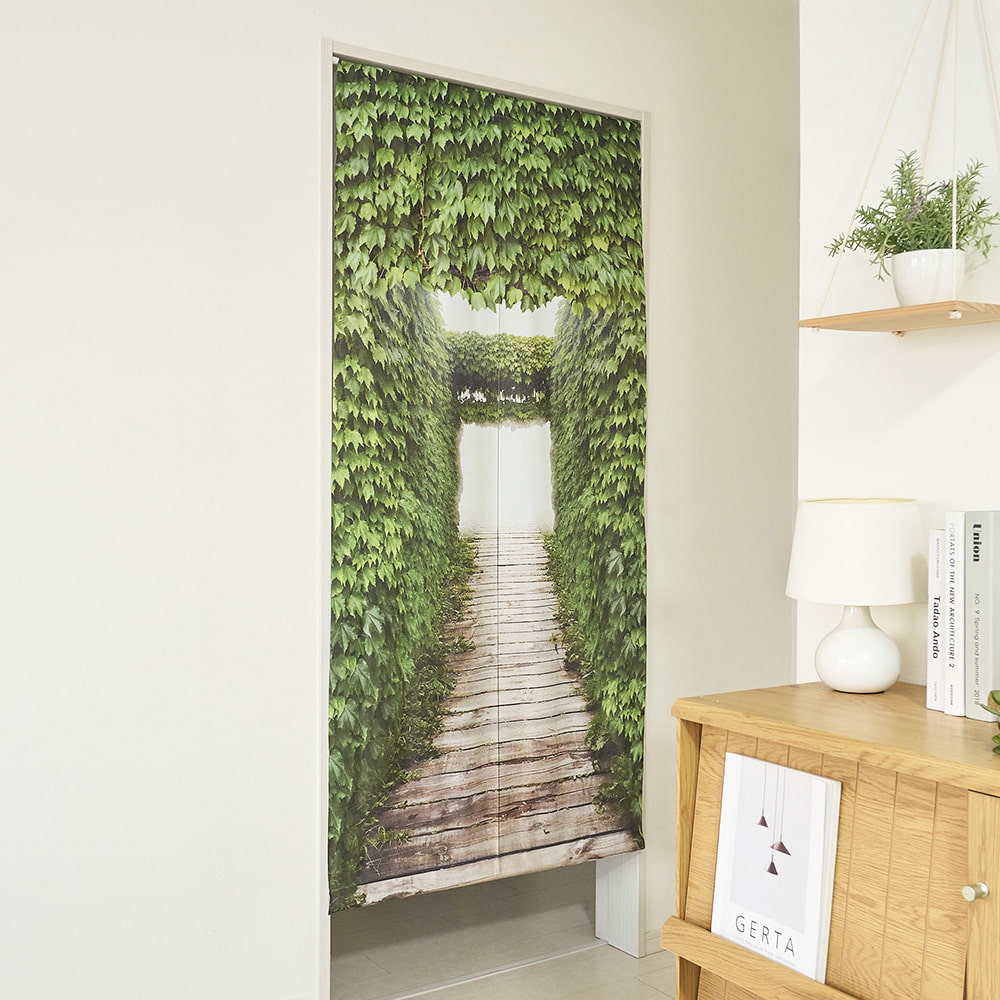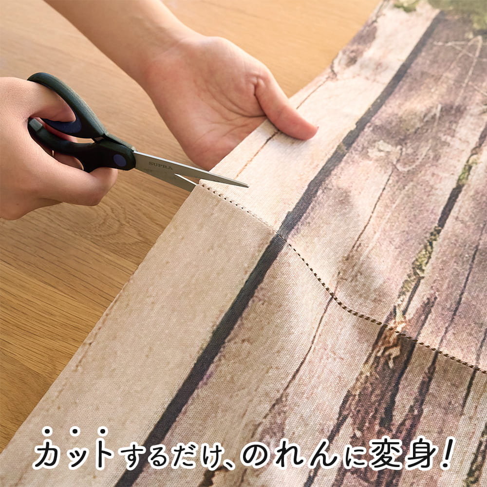 壁に飾って一枚の絵として楽しむだけでなく、中央のミシン目に沿ってハサミでカットすれば、のれんとしても使用出来ます。柔らかな手触りで、通り抜けるたびに心が和らぎます。