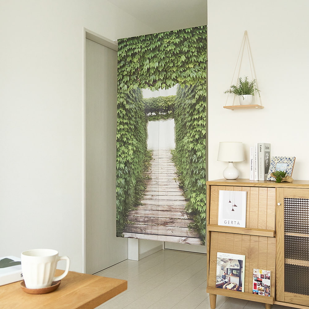 まるで秘密の庭園に迷い込んだかのような緑の小道が広がるデザイン。