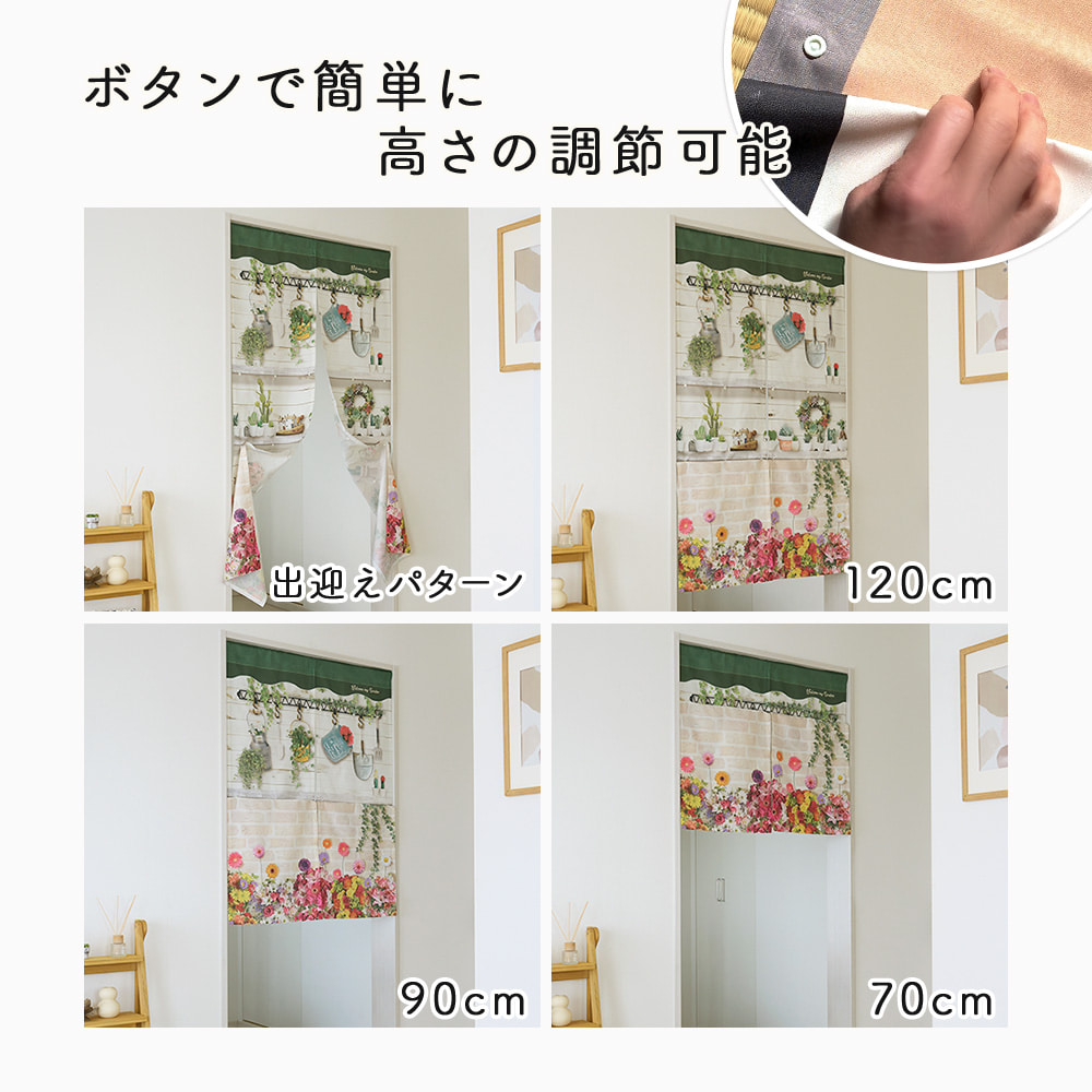 こののれんの一番の魅力は、ボタン一つで簡単に4段階の高さ調節ができること。