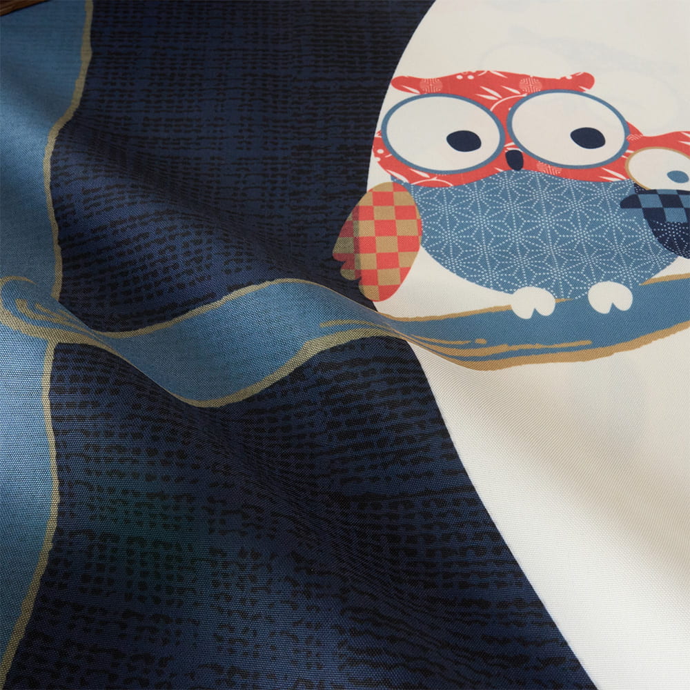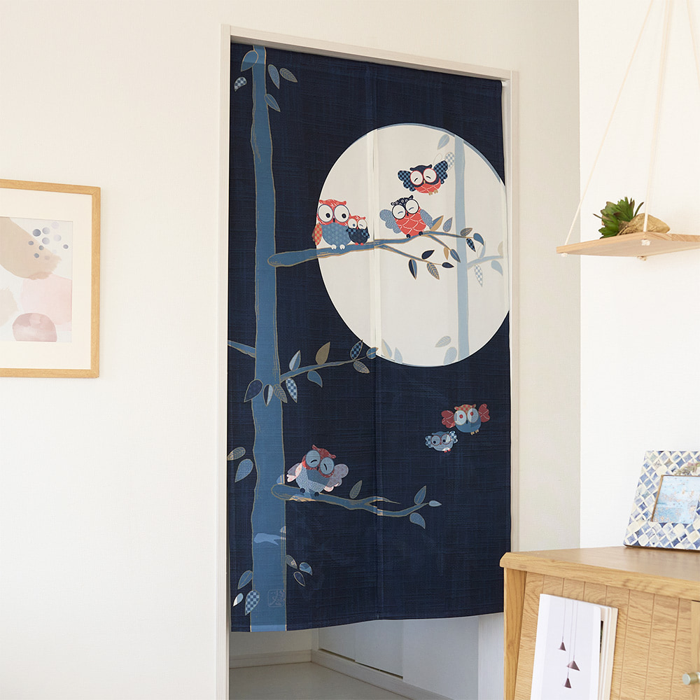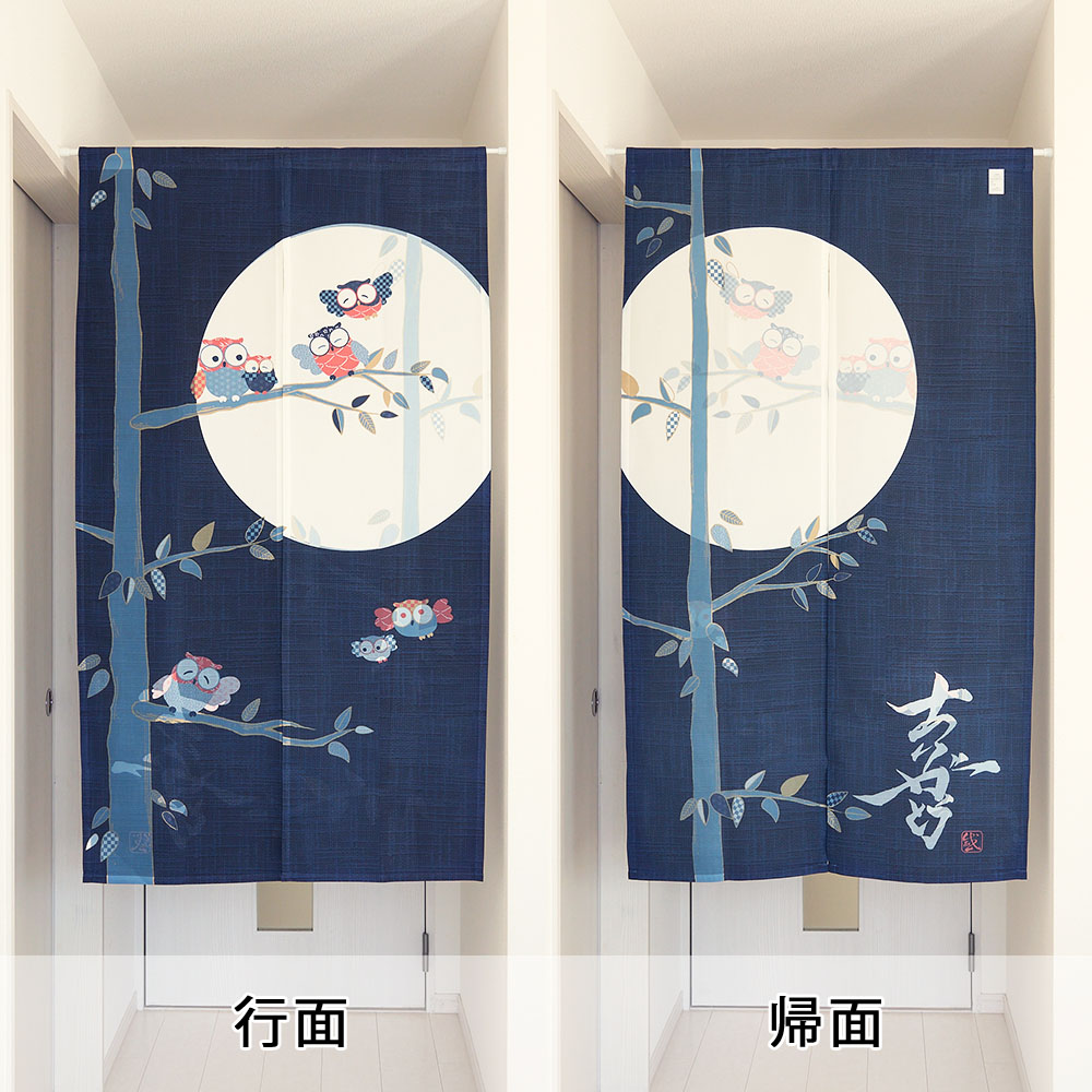 大きな満月が照らす木には、仲睦まじい7羽のフクロウの家族。裏を返すと月の中の4羽が浮かび上がる、遊び心あるデザインです。