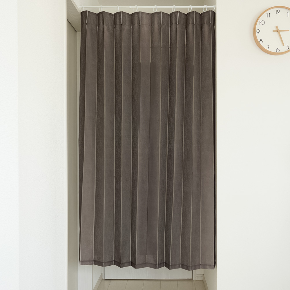そんなわがままを叶えるのがこのアコーディオンのれんです。ほどよい透け感が向こう側の気配を優しく伝え、空間を軽やかにセパレート。