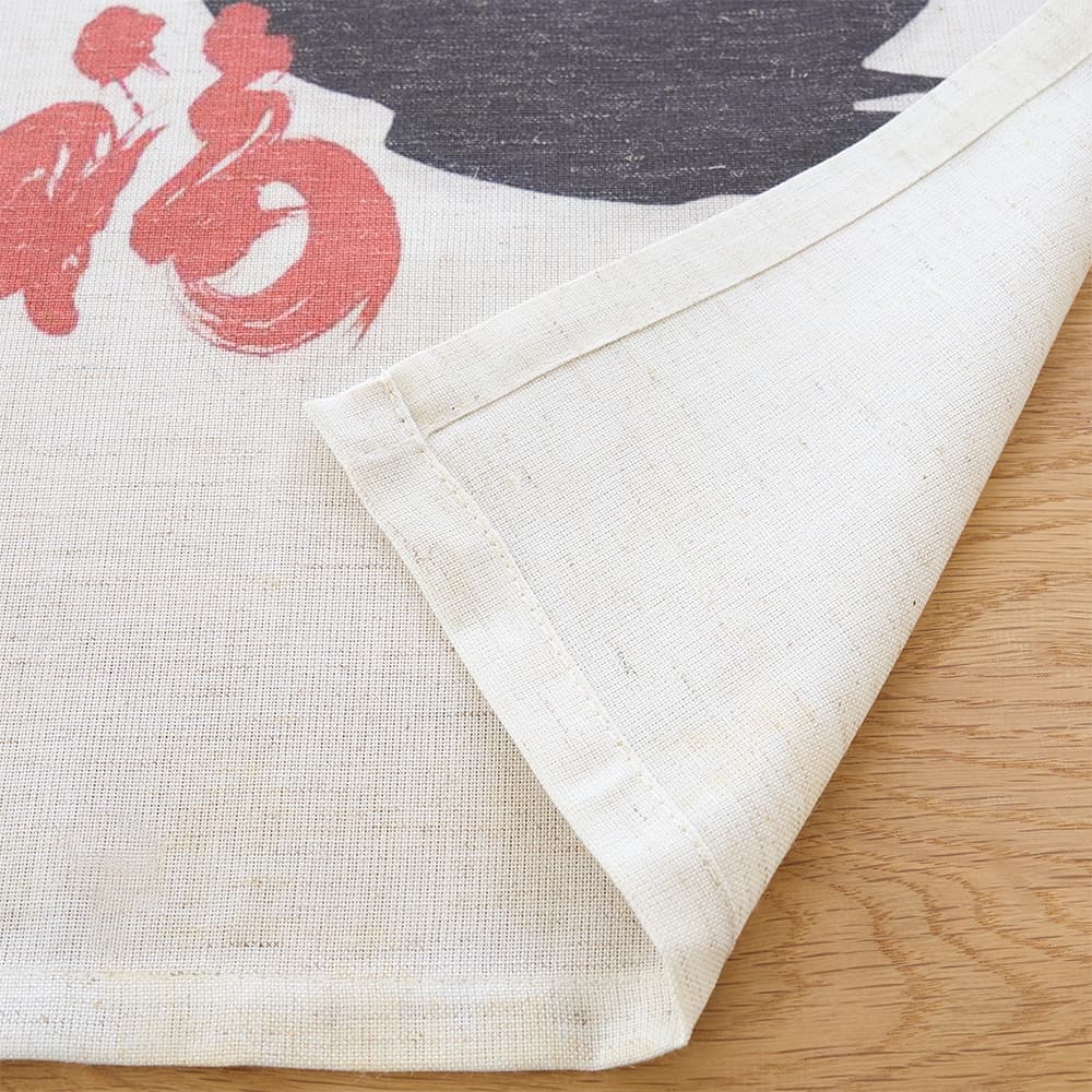 素朴な風合いの生地に、やさしい色合いで描かれた猫たちが空間をほっと和ませてくれます。