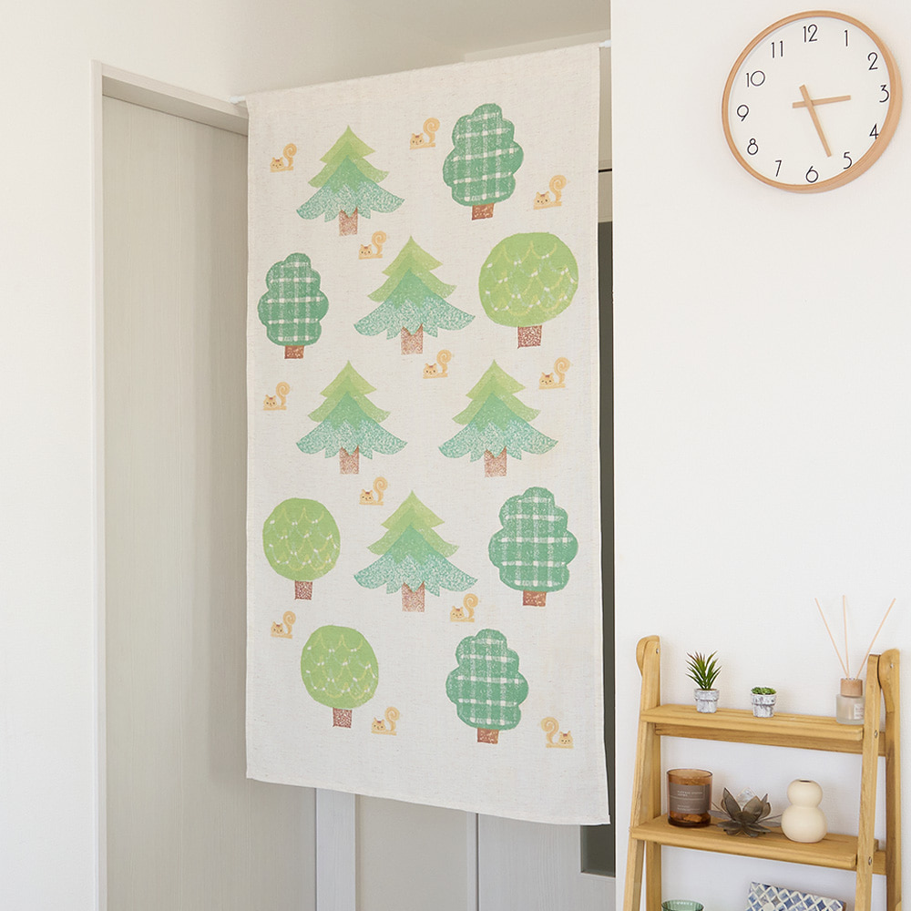 生成り地にグリーンの木々が映え、空間にほっとする癒やしをプラス。