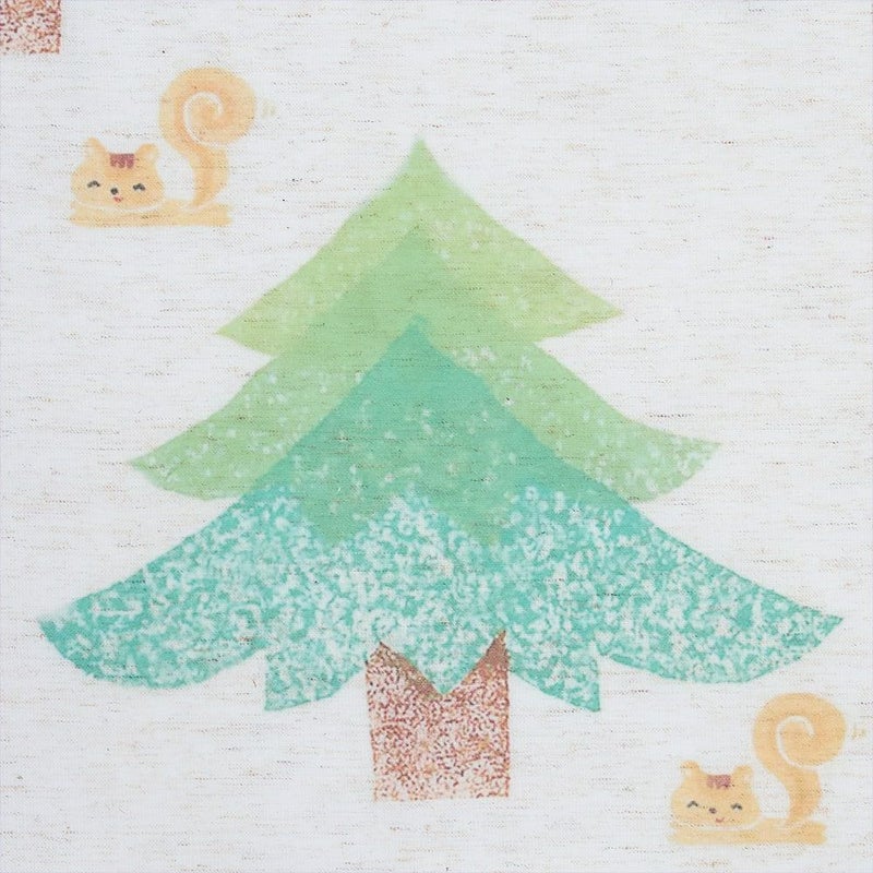 やさしいタッチで描かれた木々と、ひょっこり顔をのぞかせるリスたち。