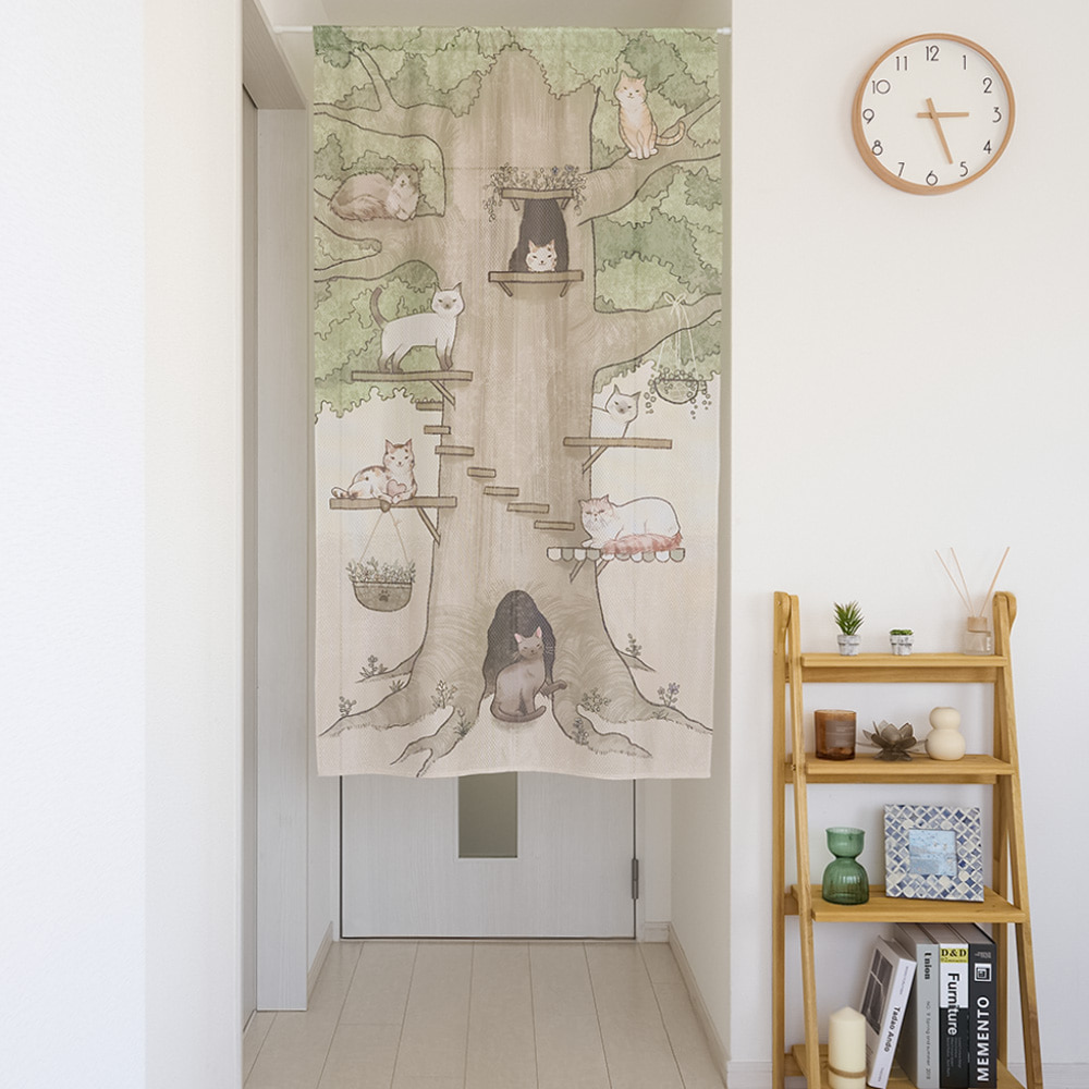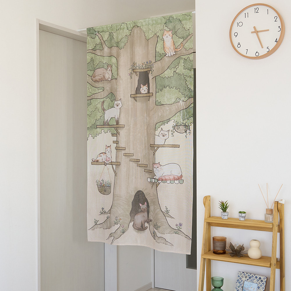 大きな木をキャットタワーに見立てて、のんびり過ごす猫たち。