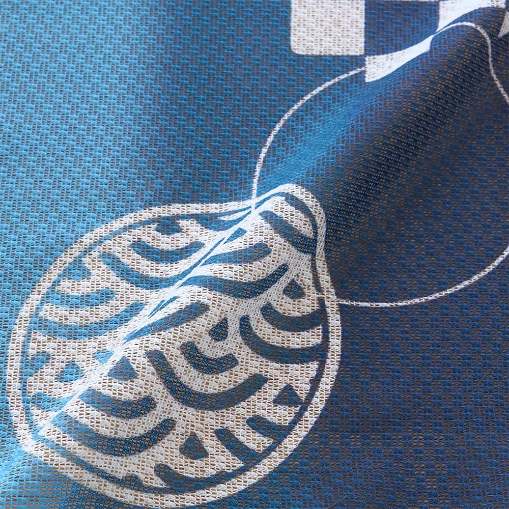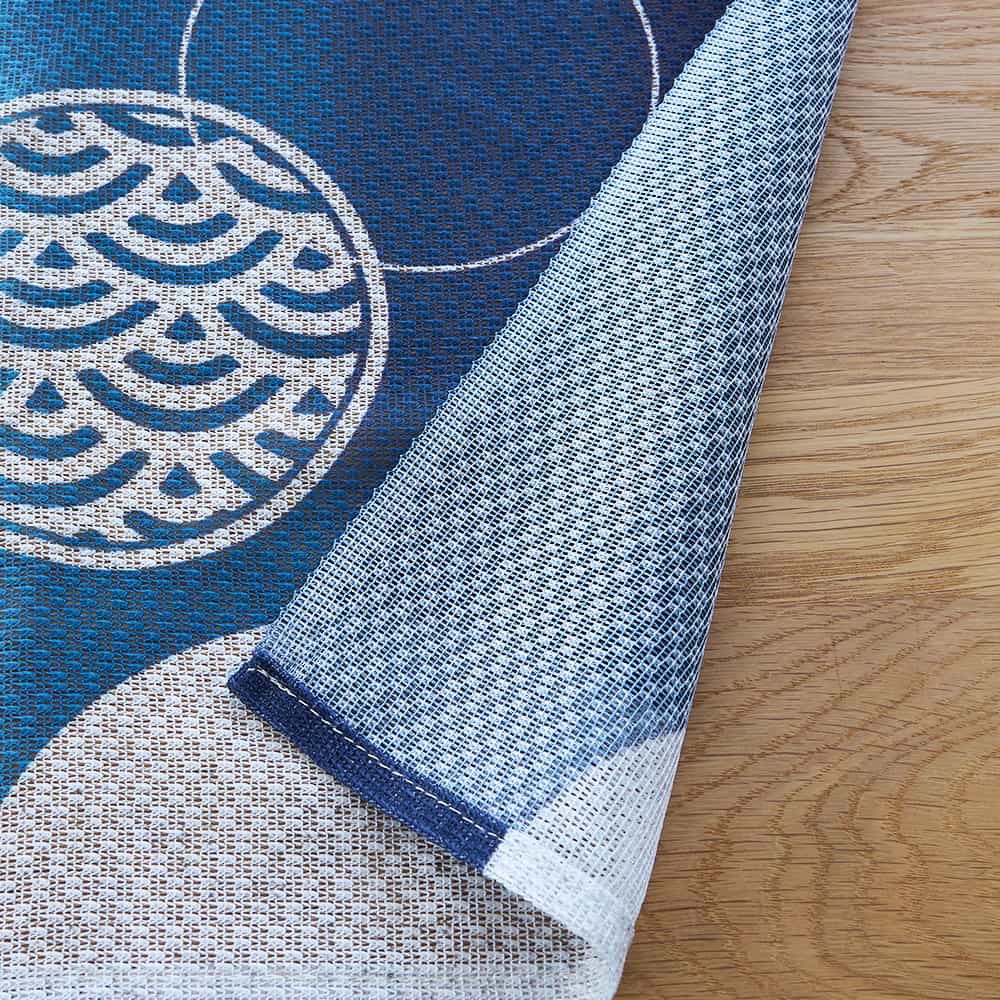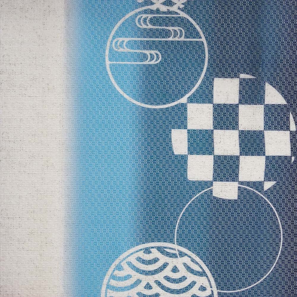 藍と白のグラデーションに、伝統的な和紋をあしらった上品なのれんです。