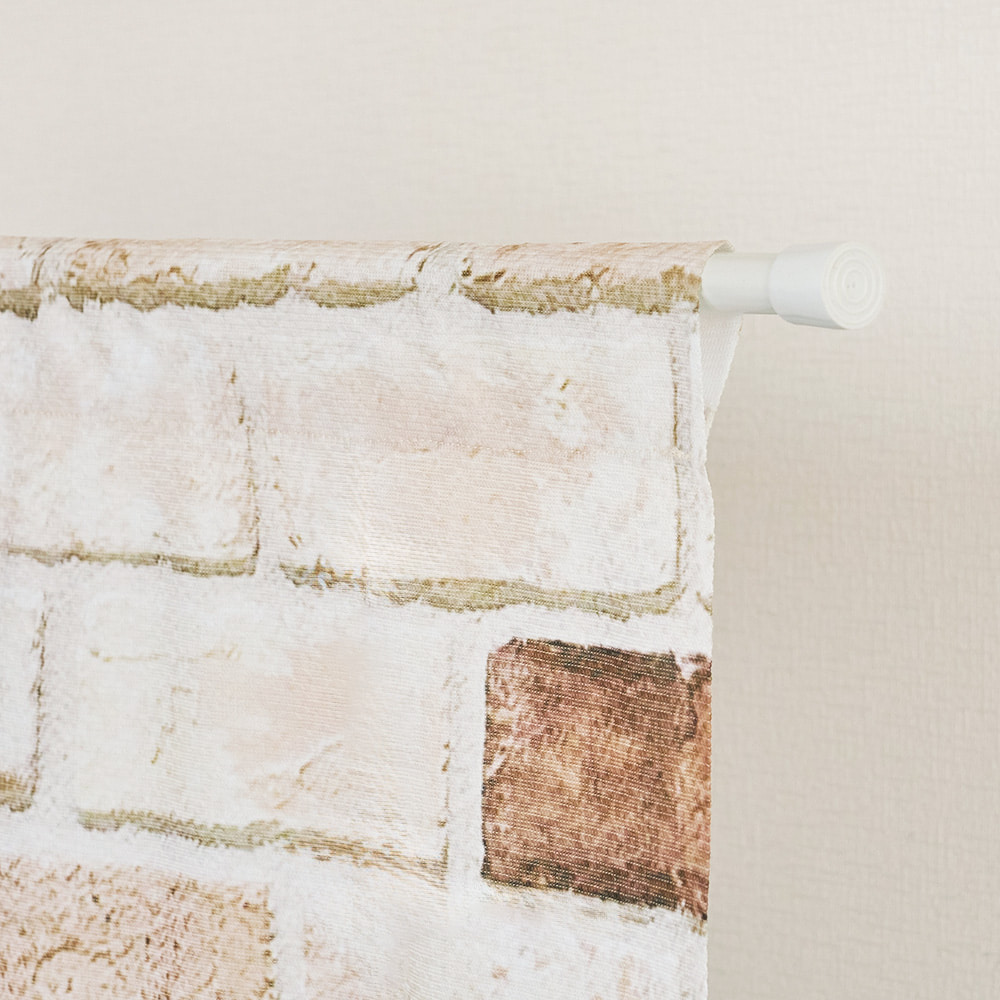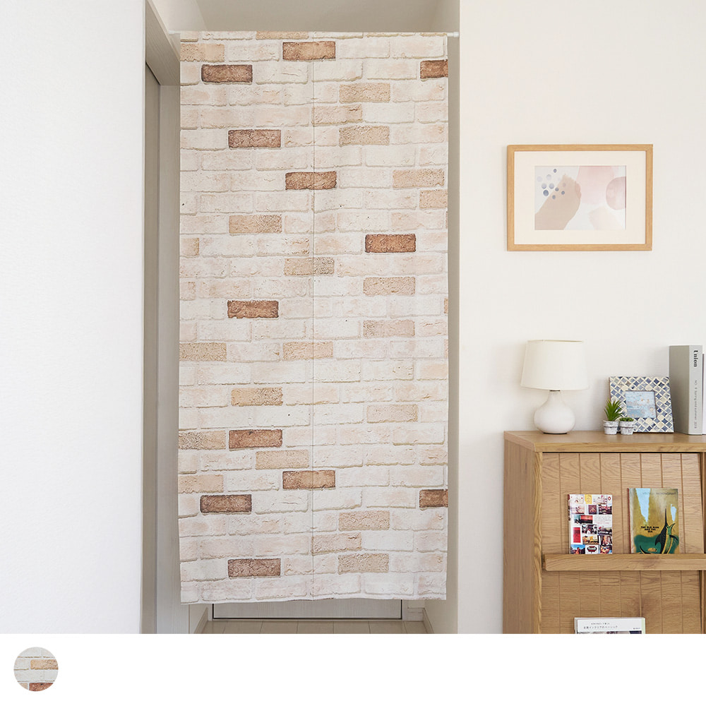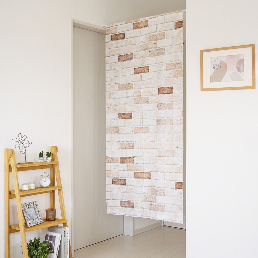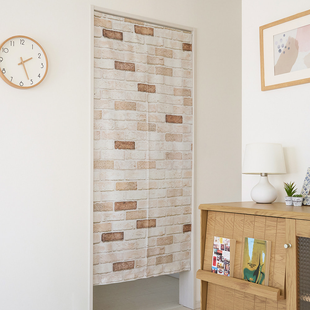 まるで本物の壁のような存在感、ナチュラルなレンガ柄ののれんです。