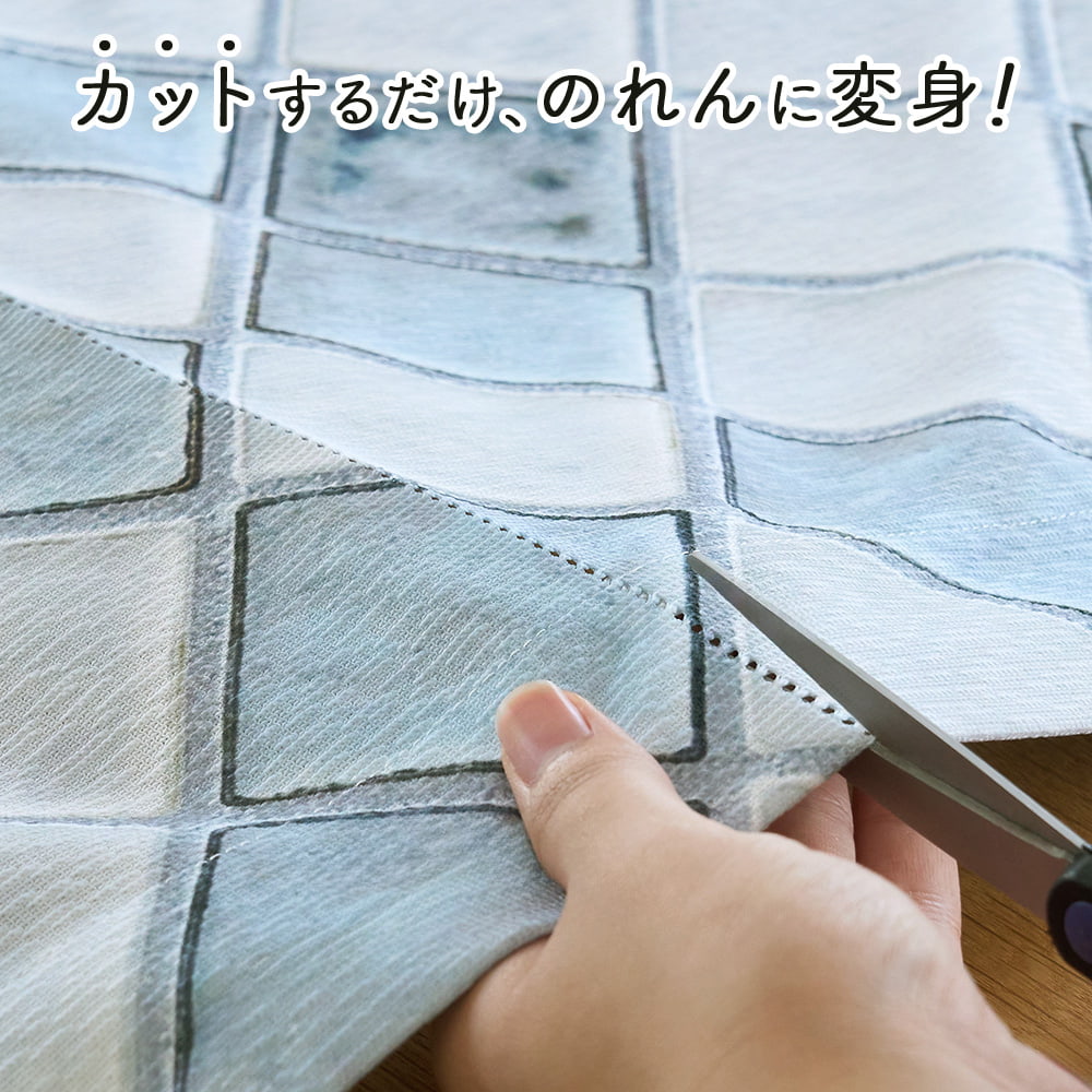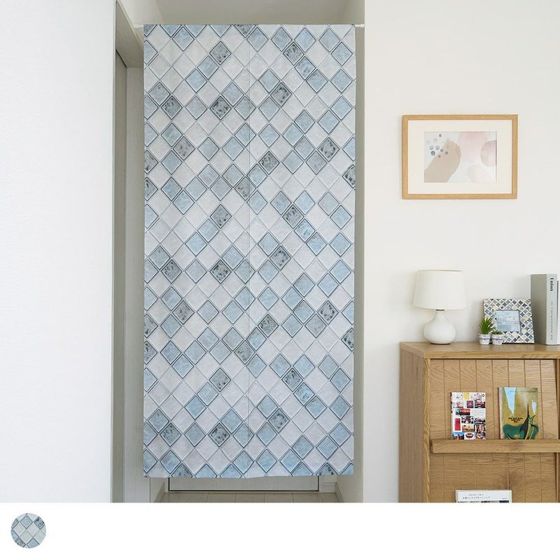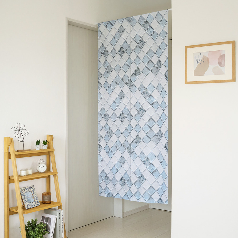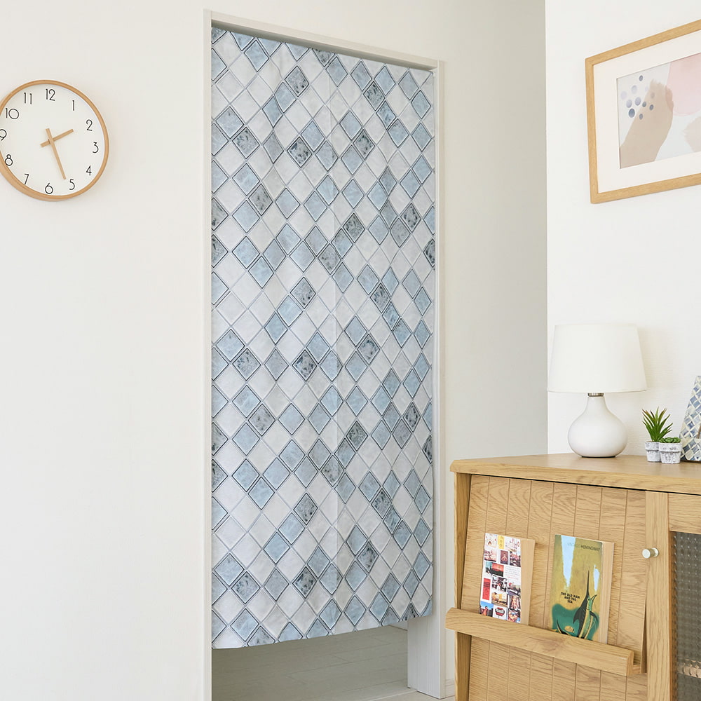 落ち着きのあるグレートーンのタイル柄が、空間に上品な印象を与えるのれん。