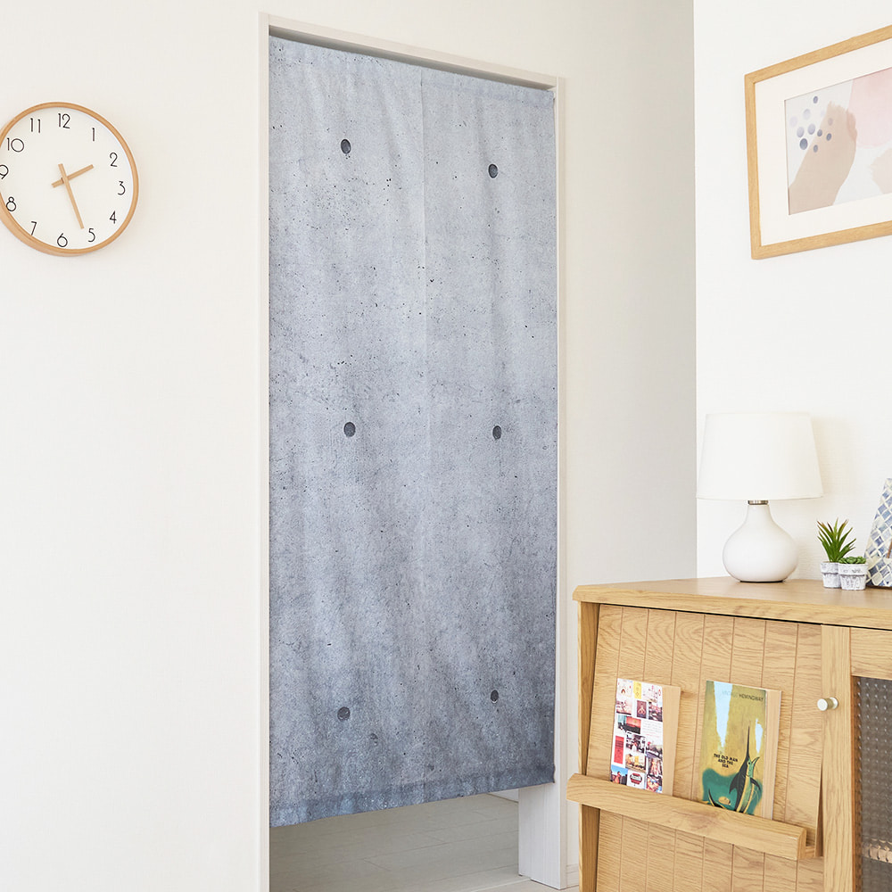 まるで本物の打ちっぱなしコンクリートのようなリアルな質感を再現したのれん。