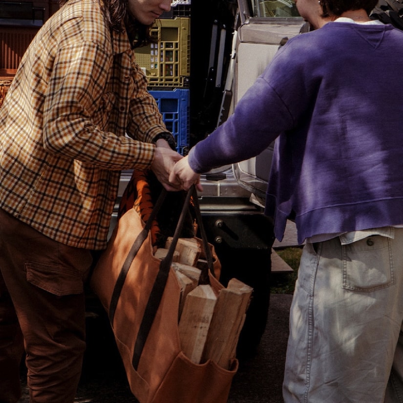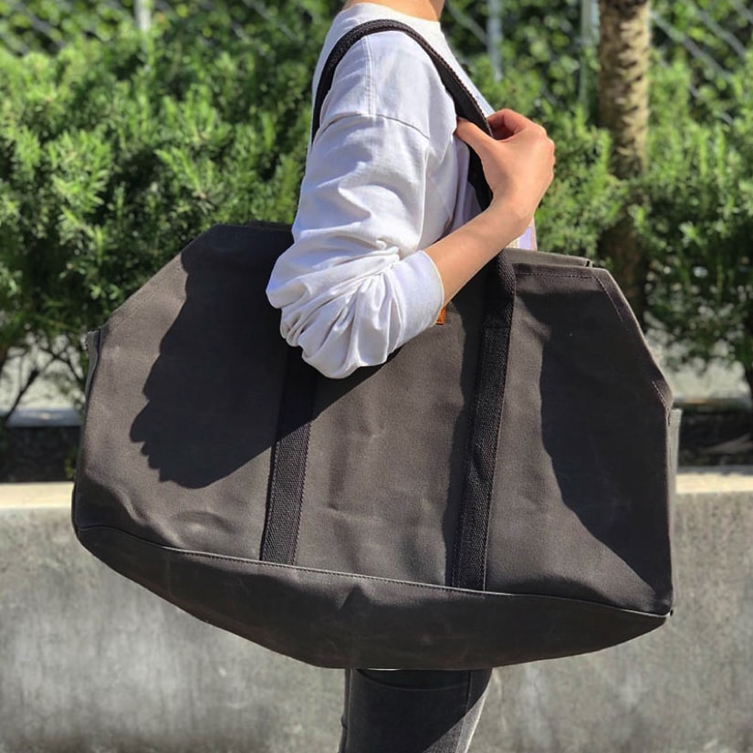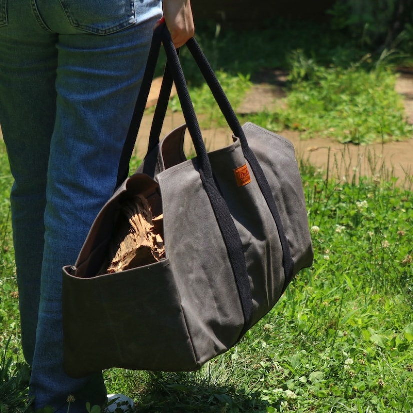 元々薪を運ぶ用として使われるログバッグですが、その他のあらゆるシーンでも使えるように、サイドにマチのあるデザインに仕上げました。
