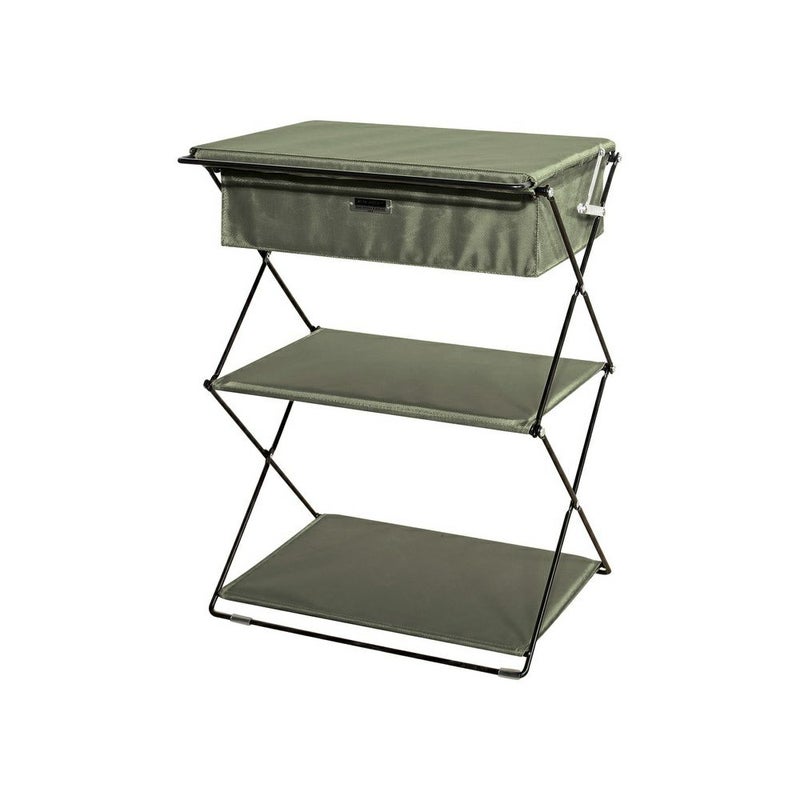 アウトドアやキャンプから室内のソファやデスク横まで、多彩なシーンで活躍するフォールディングラックです。