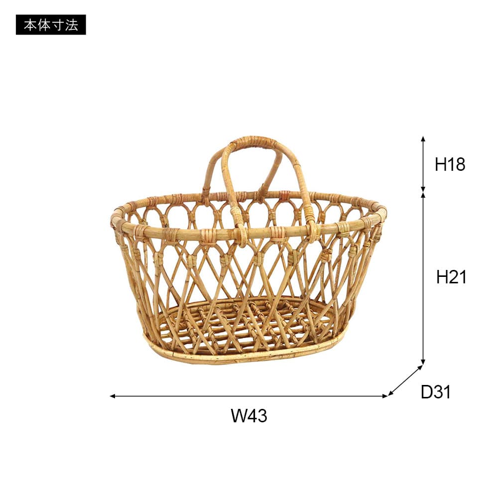 曲線のデザインが美しい、ラタン素材を使ったオーバルバスケット。