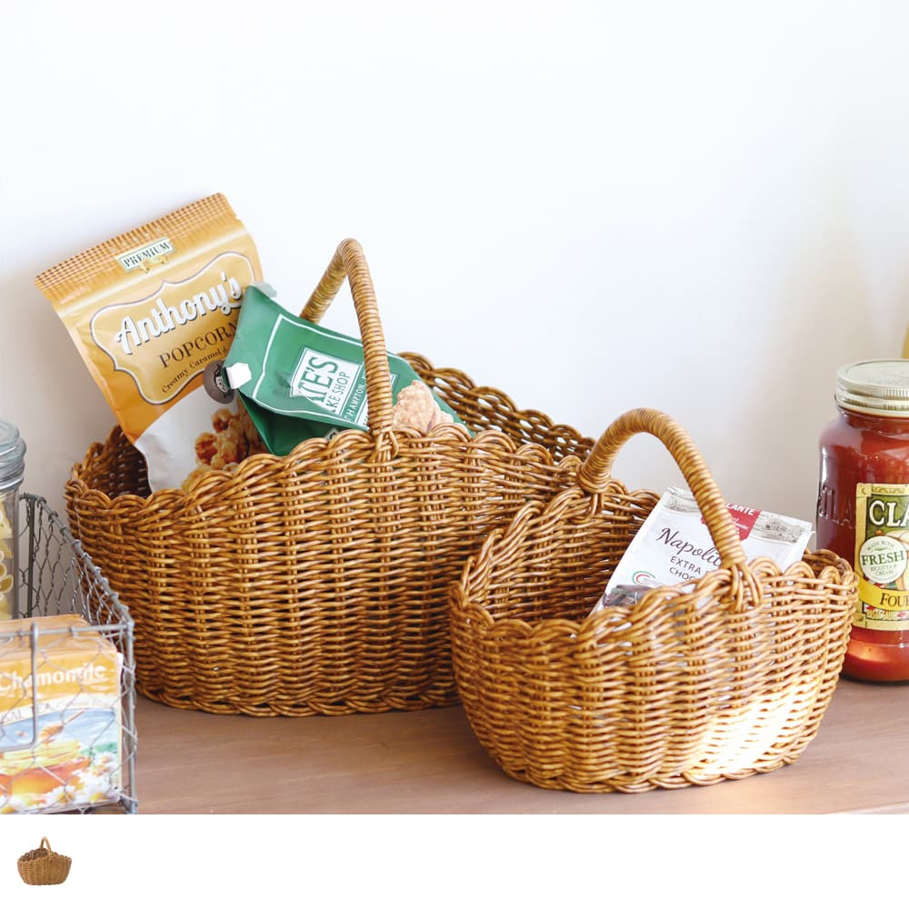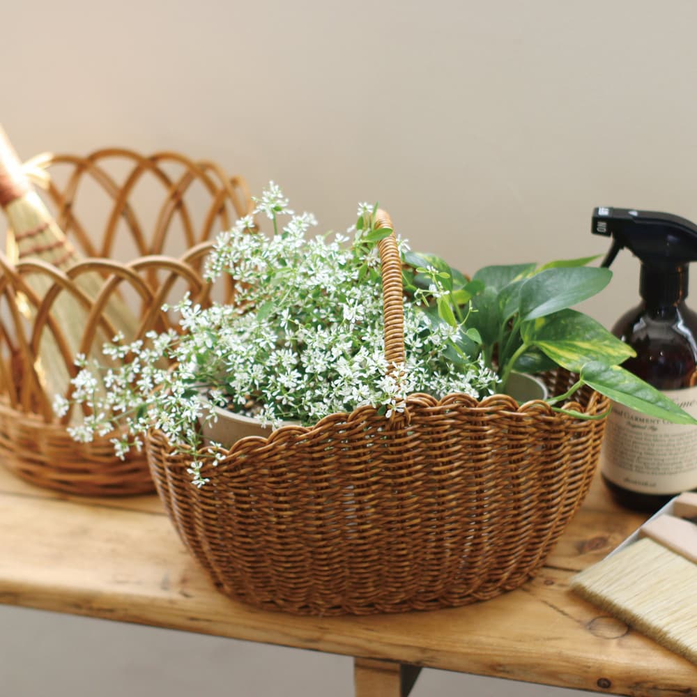 シンプルで使いやすい、洗える素材のワンハンドルバスケット。