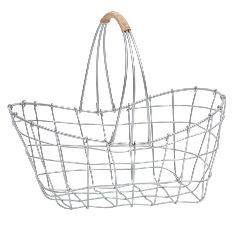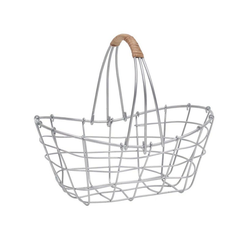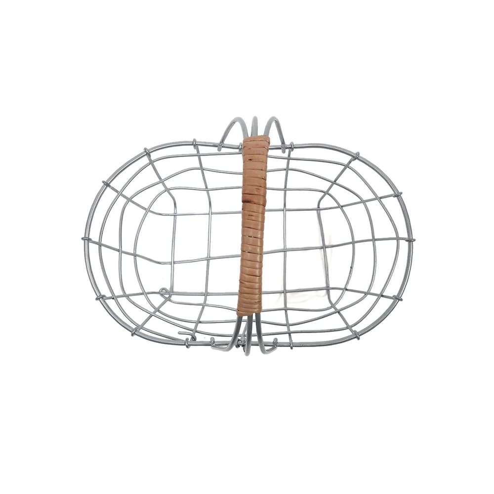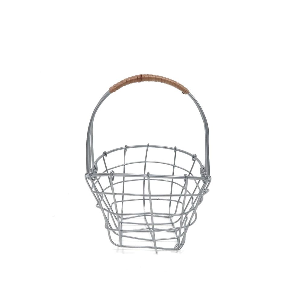 落ち着いたシルバー塗装で仕上げ、アクセントに柳を使ったワイヤーバスケットです。