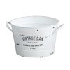 使い古したようなアンティーク加工と、遊び心のある注意書きのプリントが、