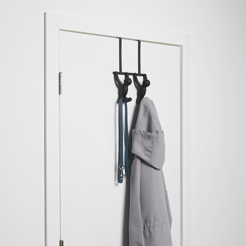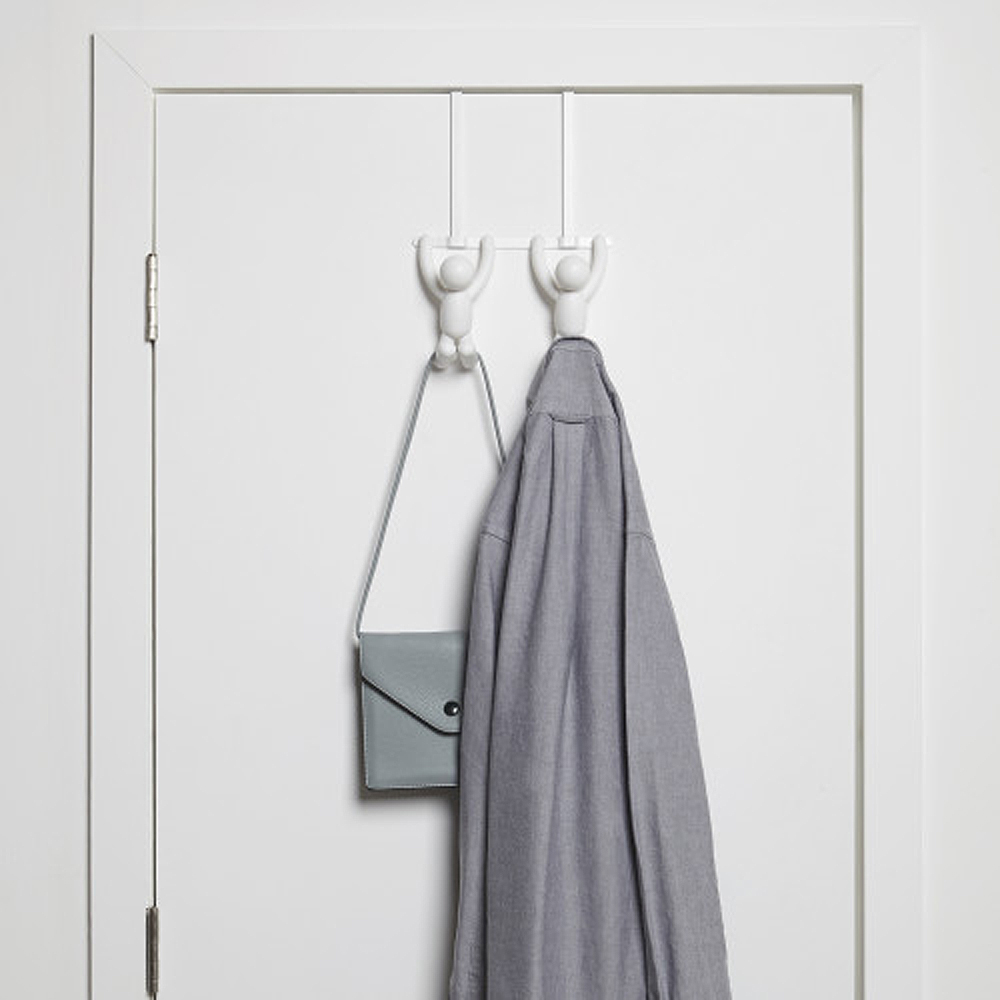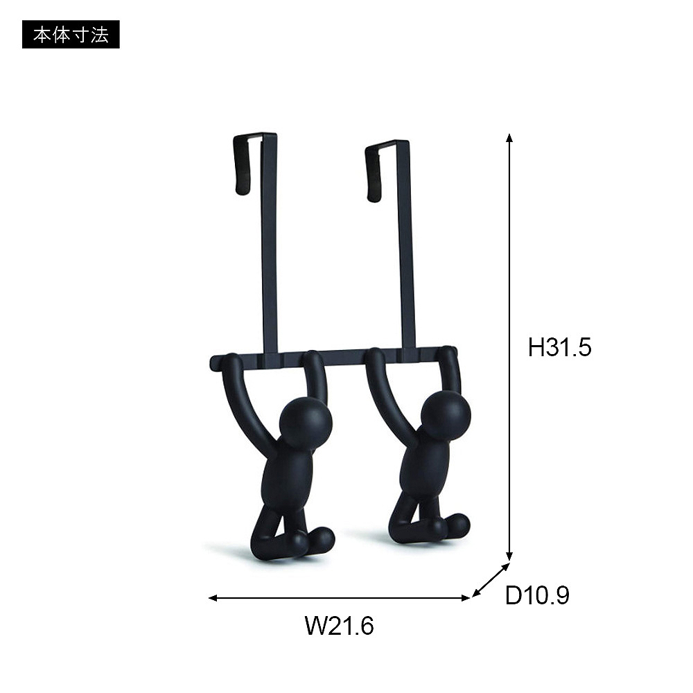 ドアにかけるだけで、簡単にフックとして使えます。バディの頭や足に、帽子やバッグ、マフラーなどを掛けて。