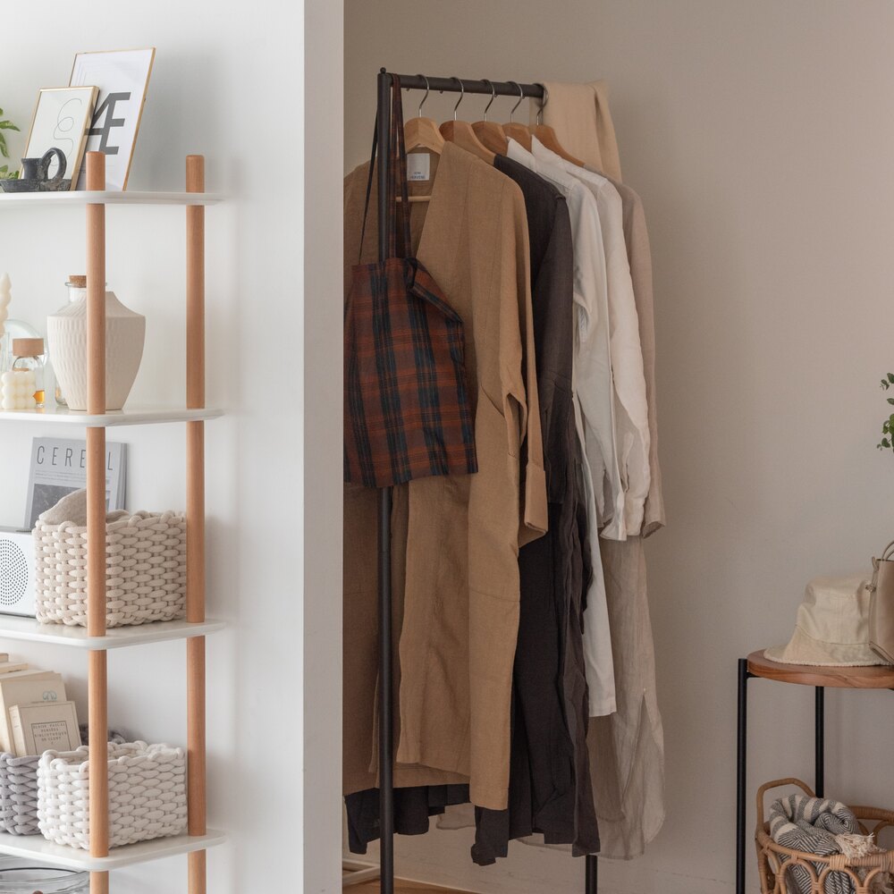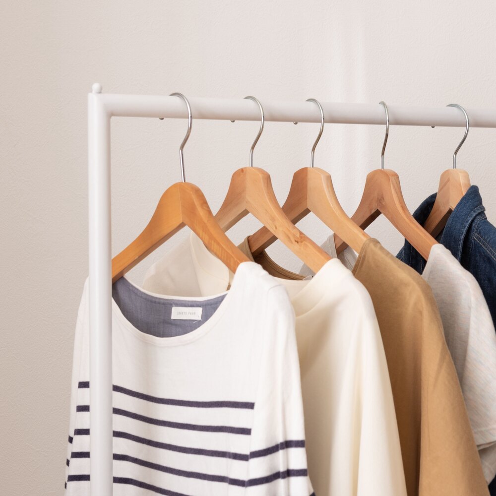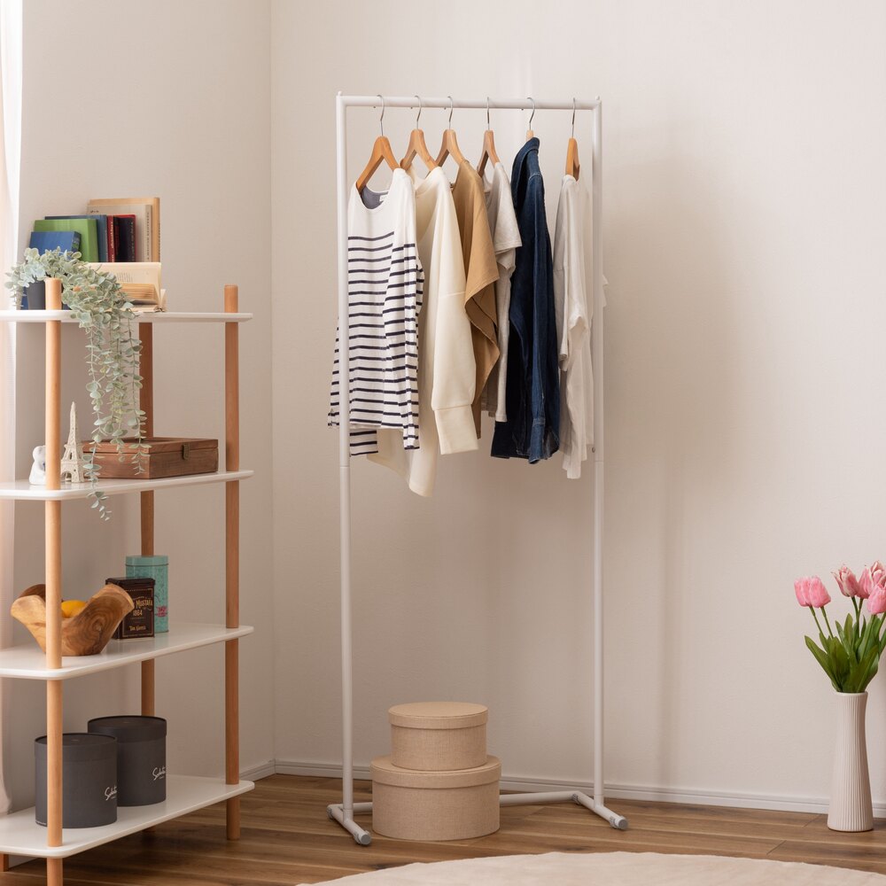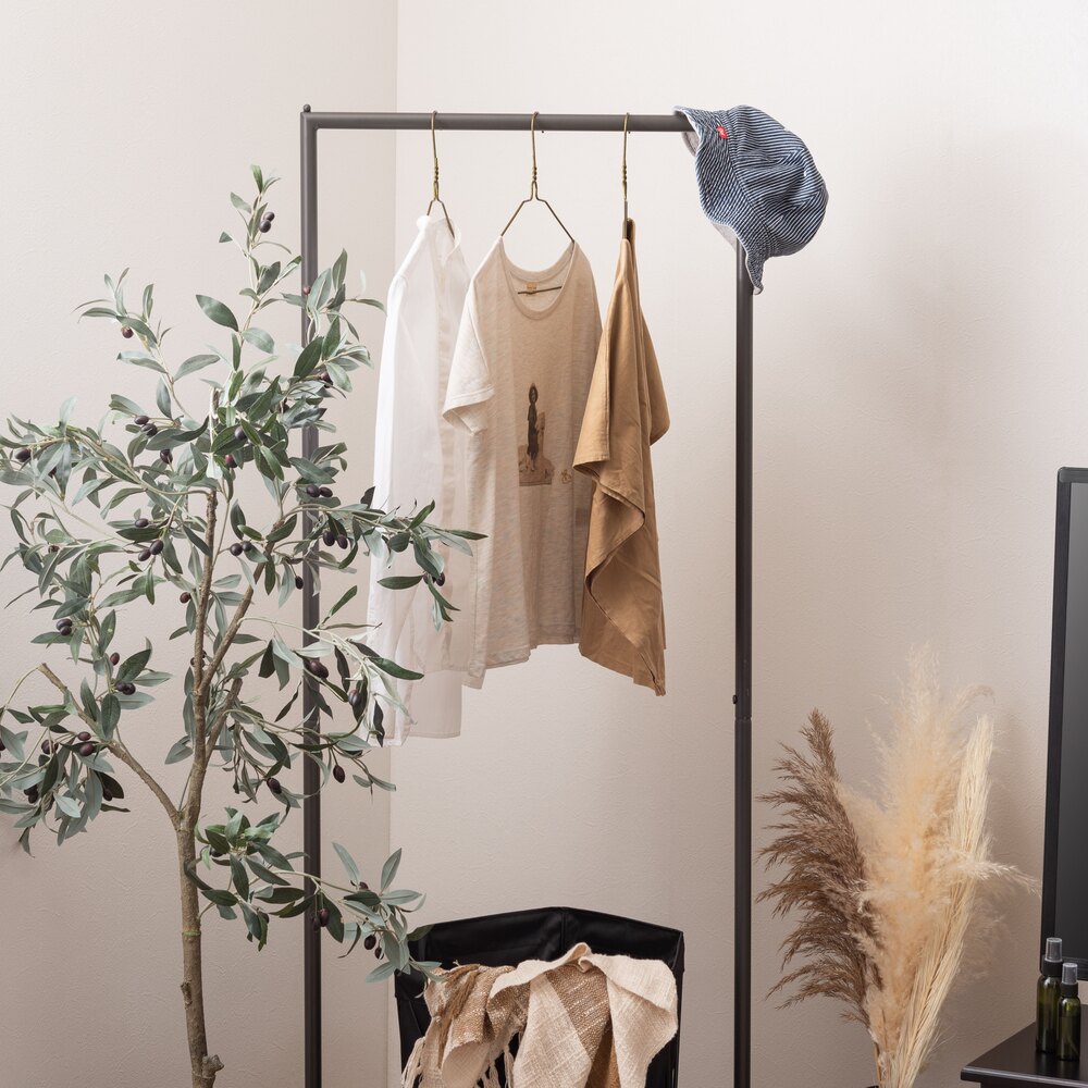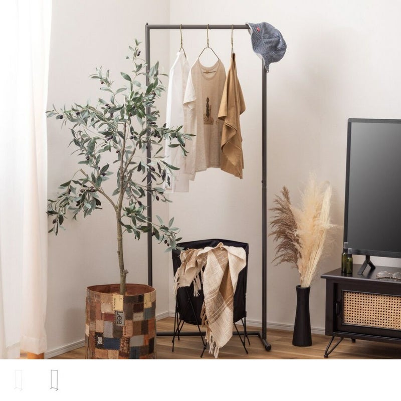 無駄をそぎ落としたスチール製ハンガーラックは、どんなお部屋にも馴染むシンプルなデザイン。