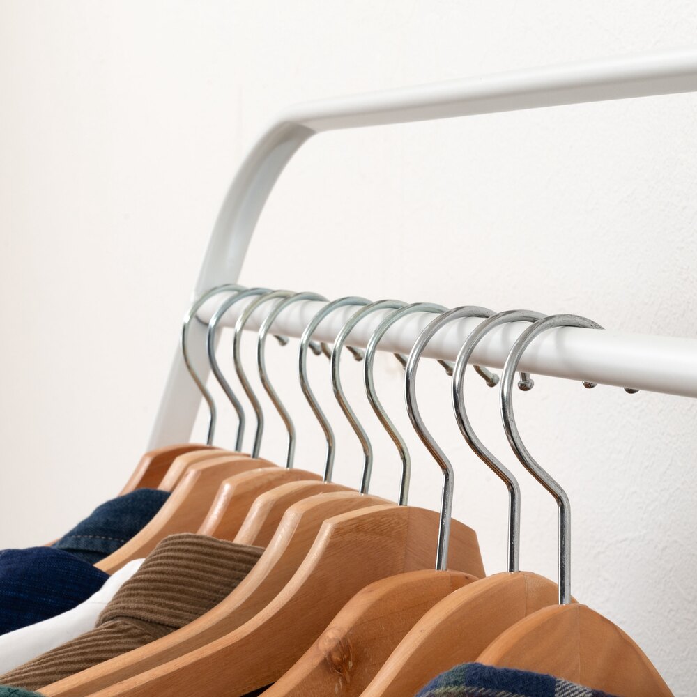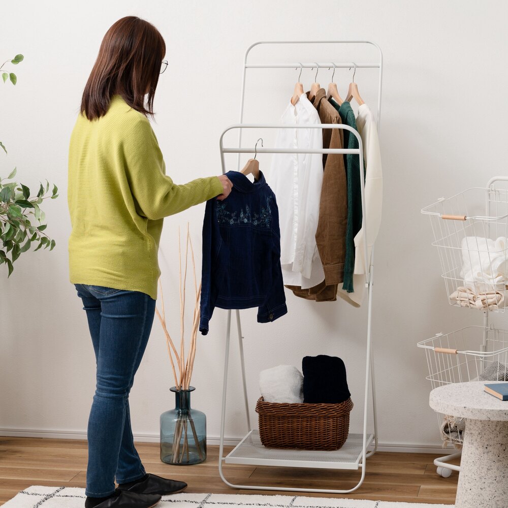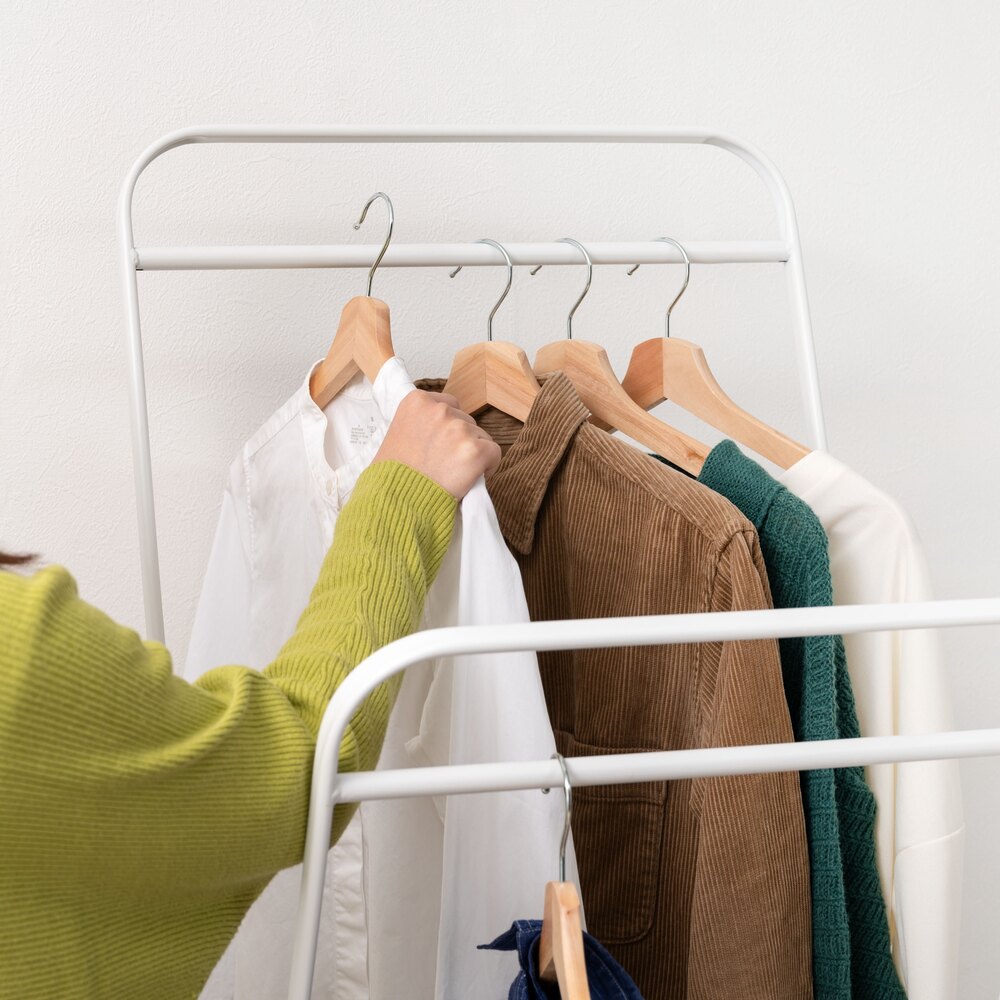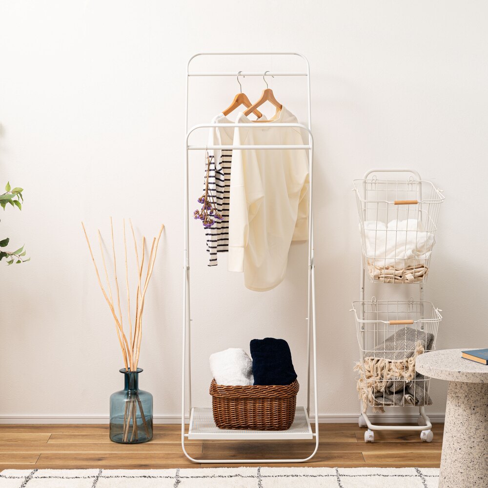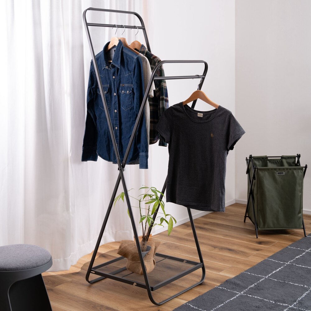 高さ違いの2段掛けも可能で、使いやすさを追求したシンプルなスチール製デザイン。