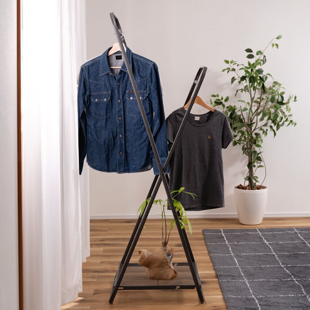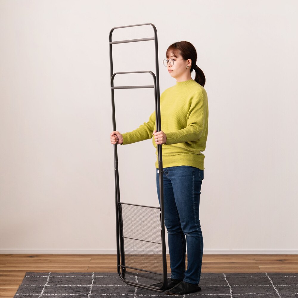 省スペース設計で場所を取らず、折りたたんで隙間に収納できるフォールディングハンガーです。