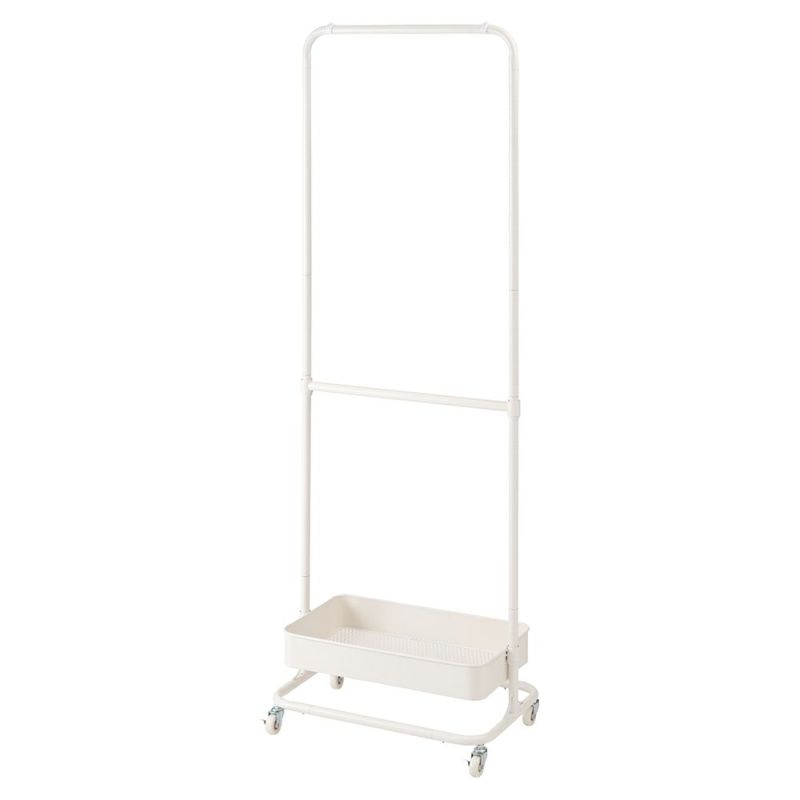中間のハンガーには、明日着る服やストールを掛けておくのに便利。キャスター付きなので、お掃除や模様替えの際の移動もスムーズです。