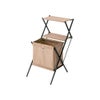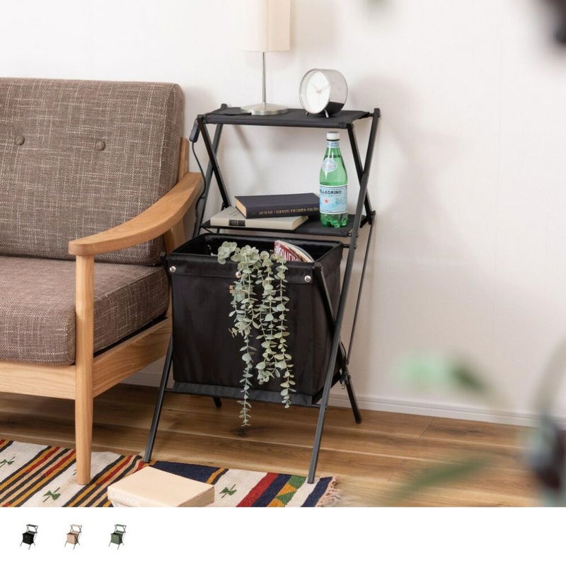 お気に入りの雑誌や小物をたっぷりしまえるバスケットと、飲み物を安定して置ける棚がひとつになりました。