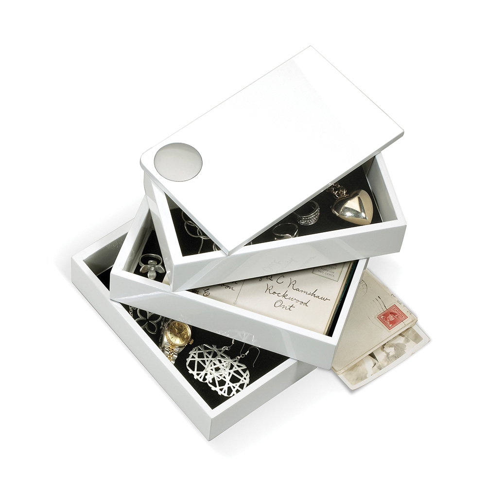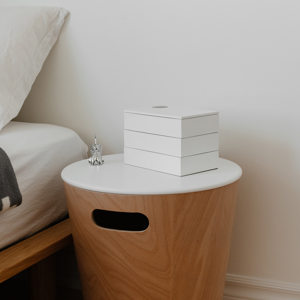 朝、今日身につけるアクセサリーを選ぶ時間。お気に入りのリングやネックレスをこのスピンドルボックスから。