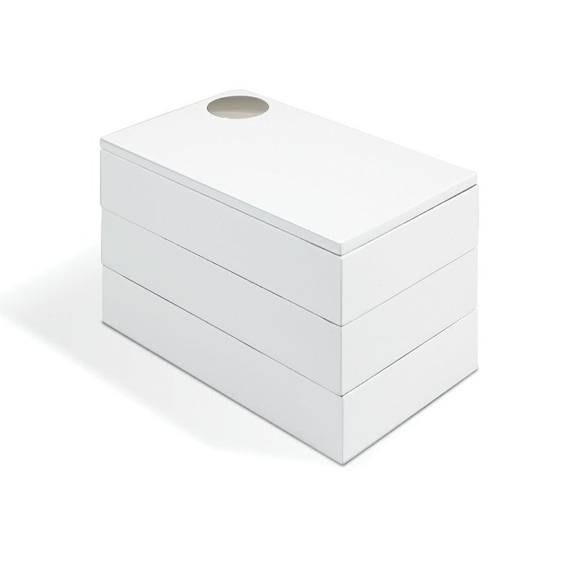 内側は柔らかな布が張ってあるからデリケートなジュエリーも安心で、指輪やピアス、ネックレスまで、大切な宝物を種類ごとに分けてすっきりしまえます。