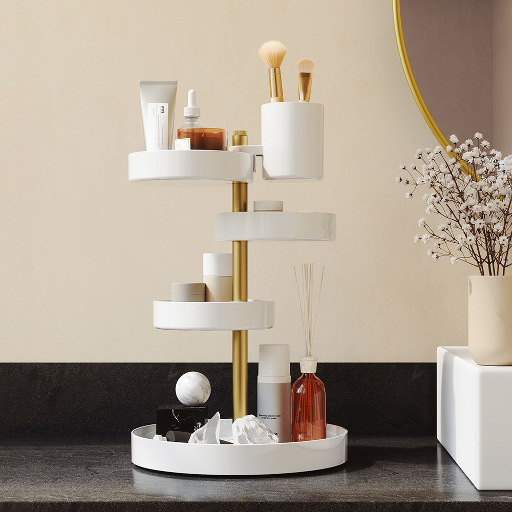 くるっと360度回せば必要なものがすぐに手に取れて、朝の支度もスムーズに。