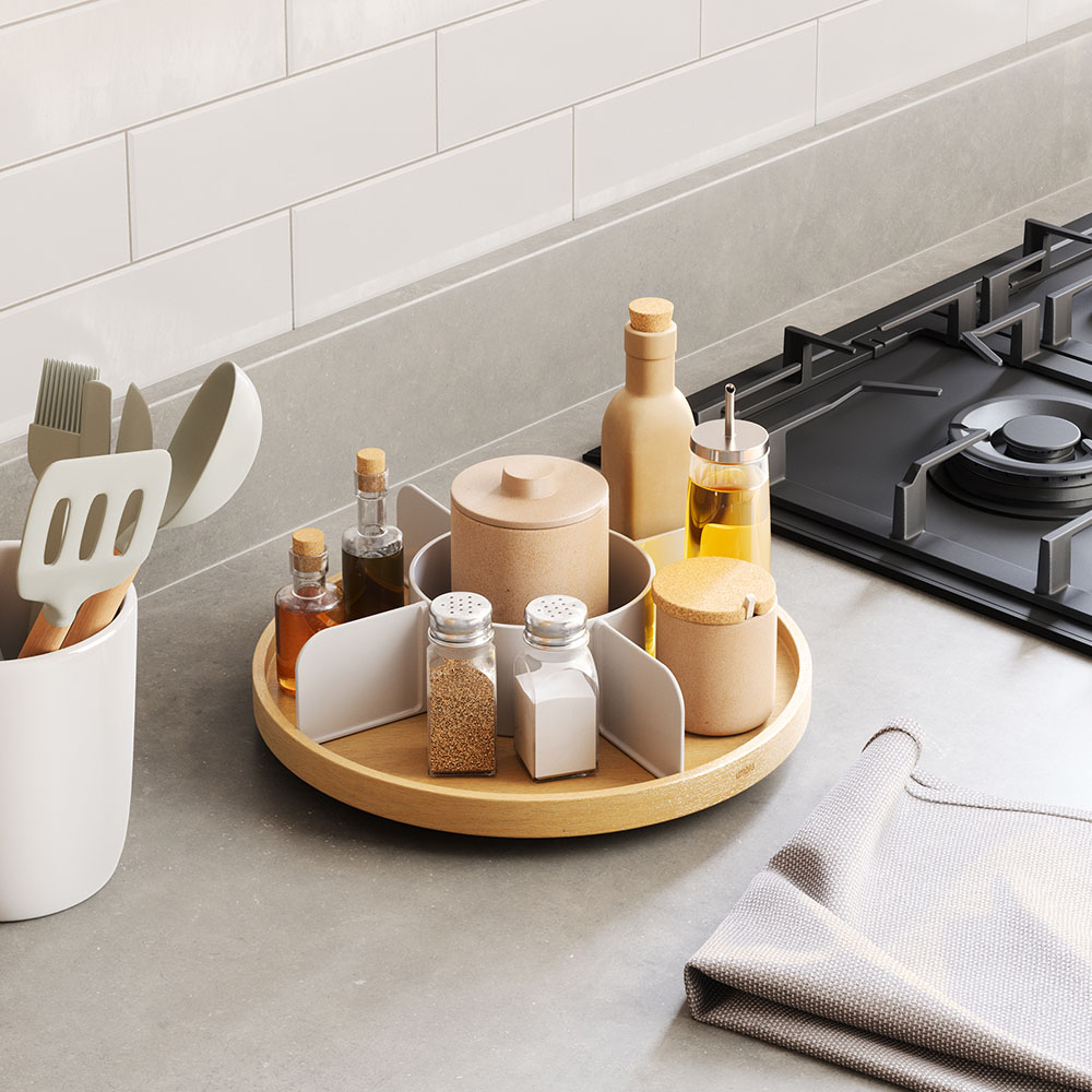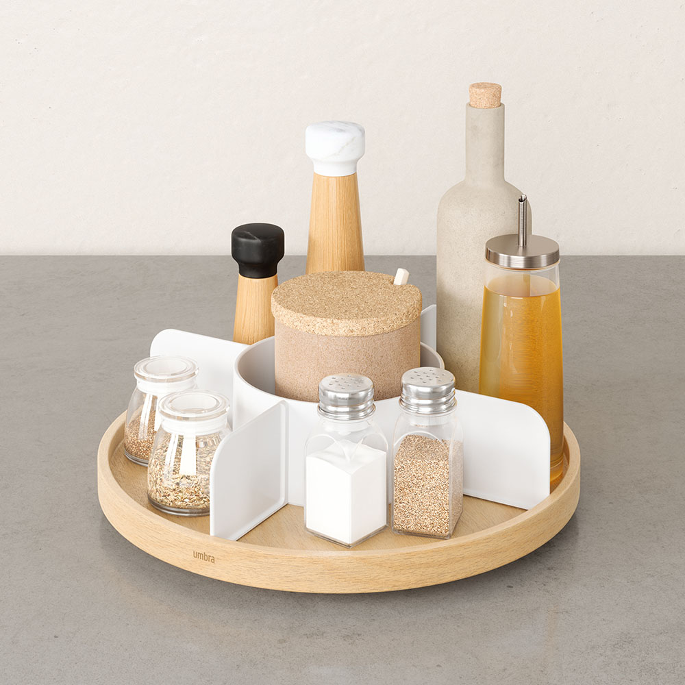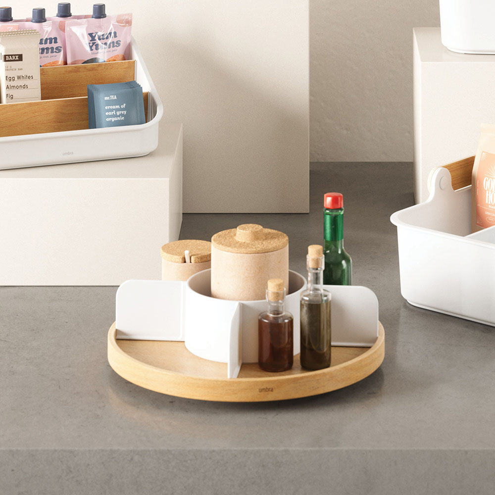 天板がくるっと360度回転するから置いた場所から向きを変えずに、必要なものがサッと取り出せます。
