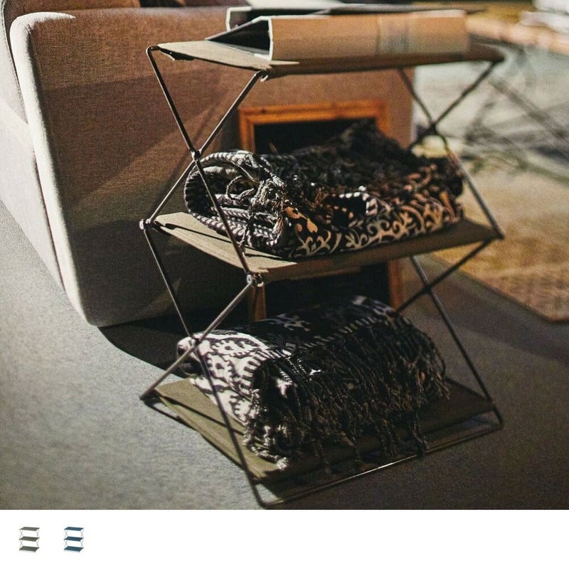 スチールとファブリックを組み合わせた、軽やかな印象のフォールディングシェルフです。