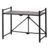シックな石目調の天板は、キッチンだけでなくリビングのサイドテーブルとしても活躍。使わない時はパタンと折りたたんで、家具の隙間に収納できます。