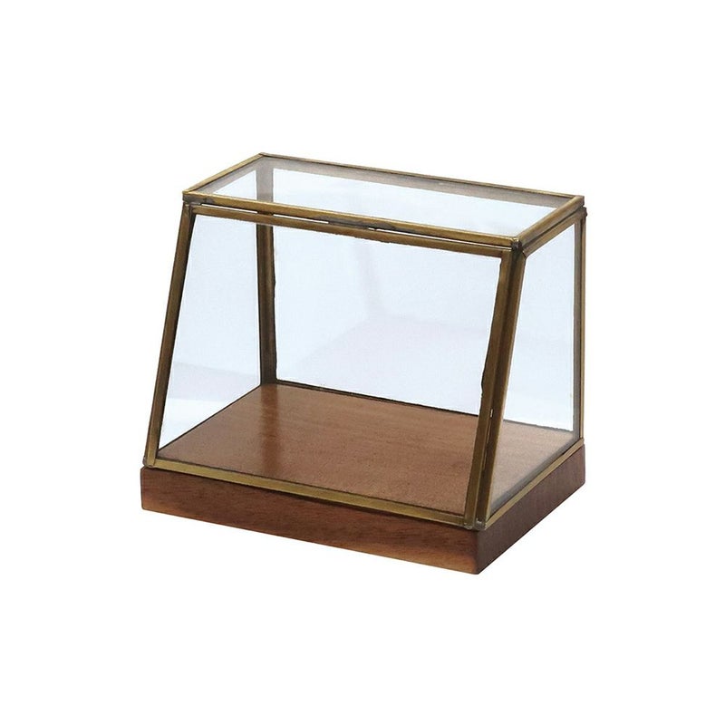 真鍮の枠とアカシアの台座が味わい深いガラスのショーケースです。
