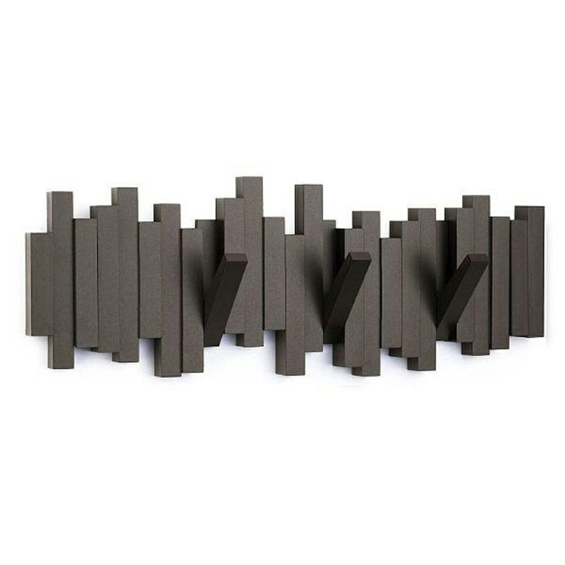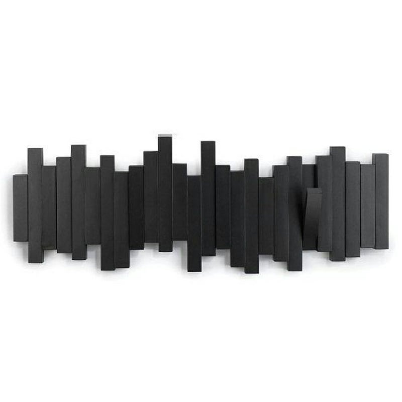 に十分な吊り下げスペースのための5つのフリップ式ダウンフックを備えるユニークな壁付けコートラックです。