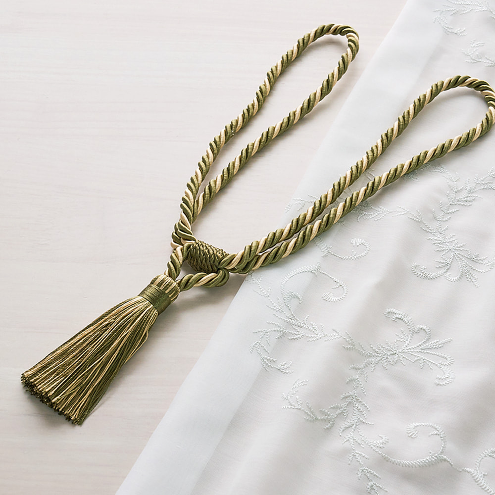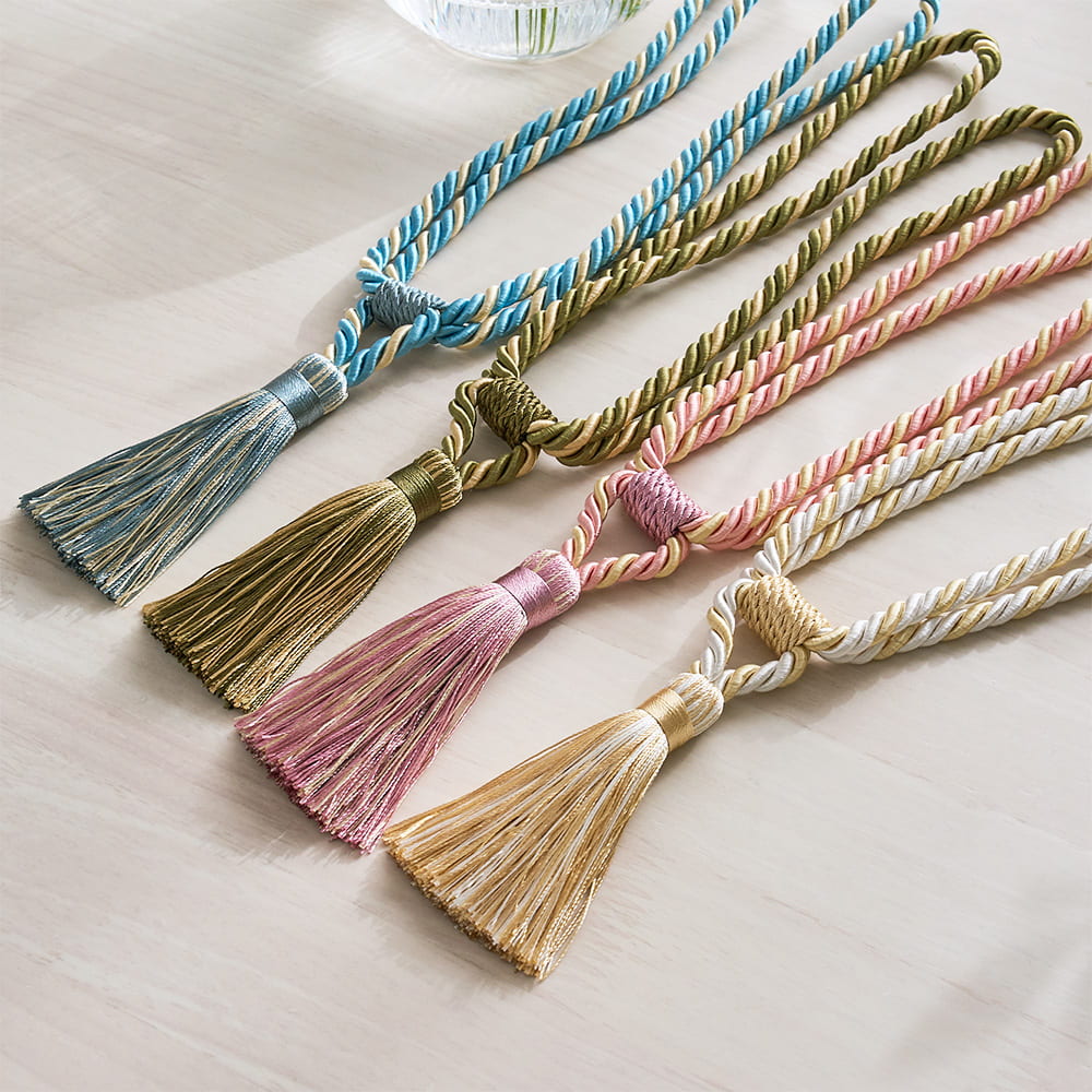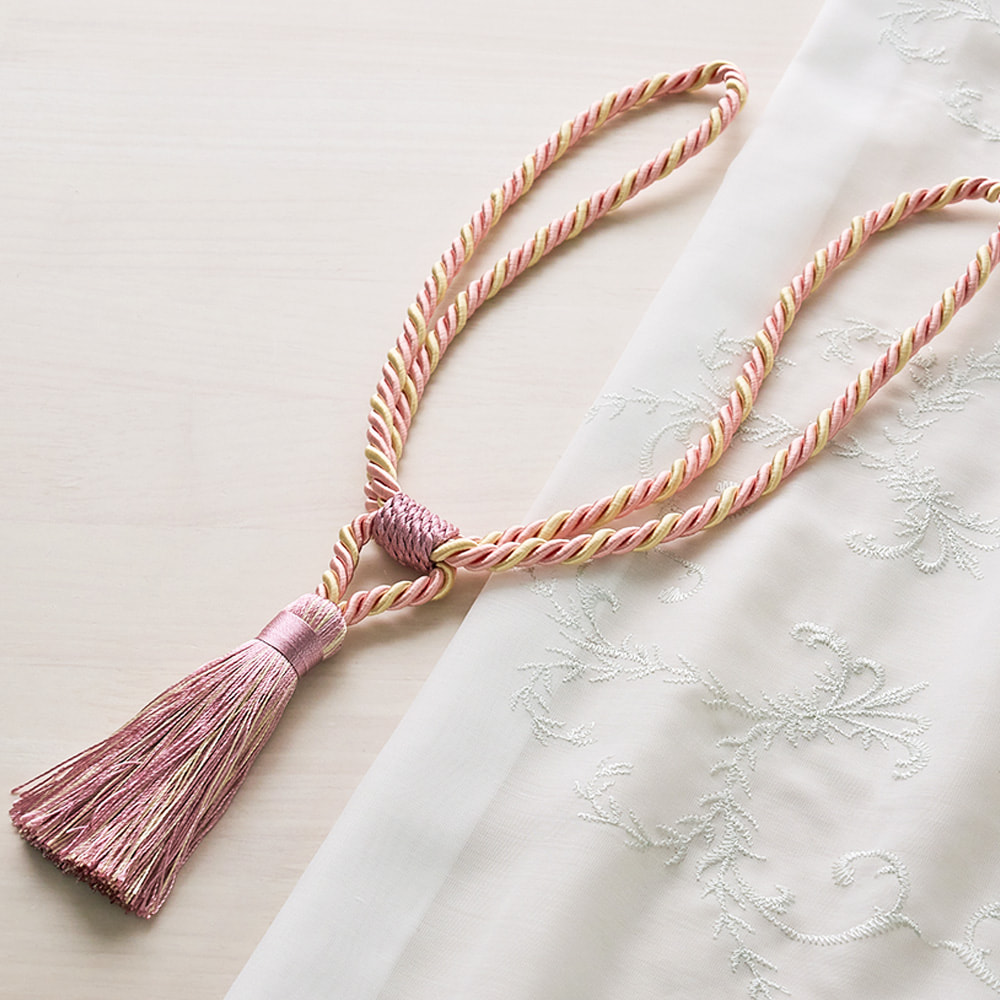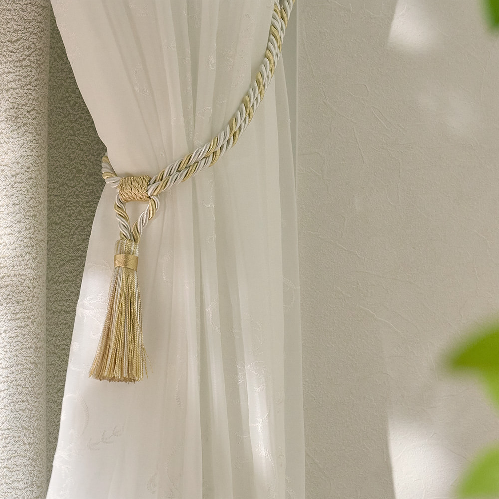 小ぶりで可愛らしいタッセルがふわりと揺れ、コンパクトなサイズ感がカーテンにそっと華やぎを添えてくれます。