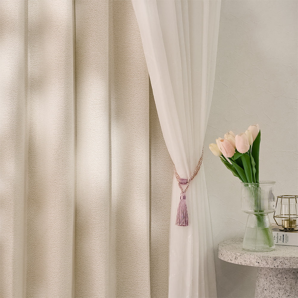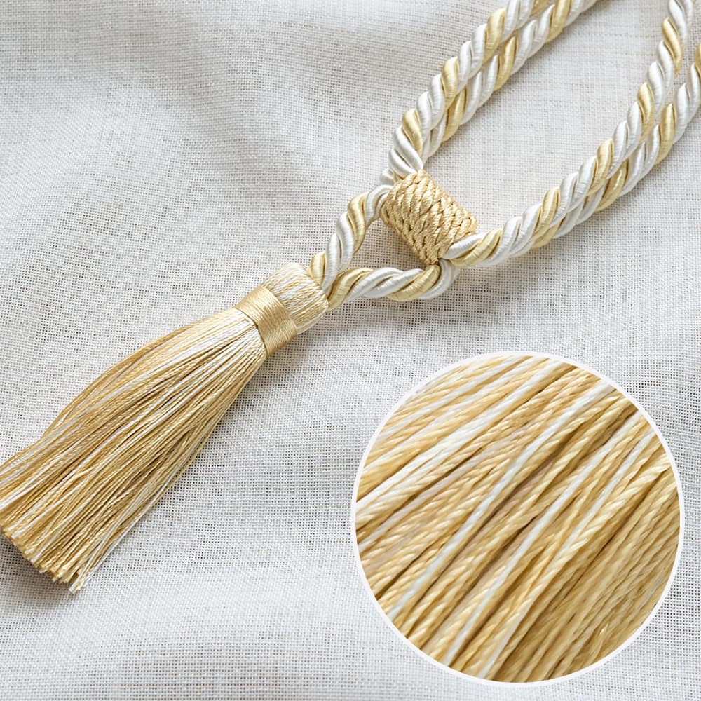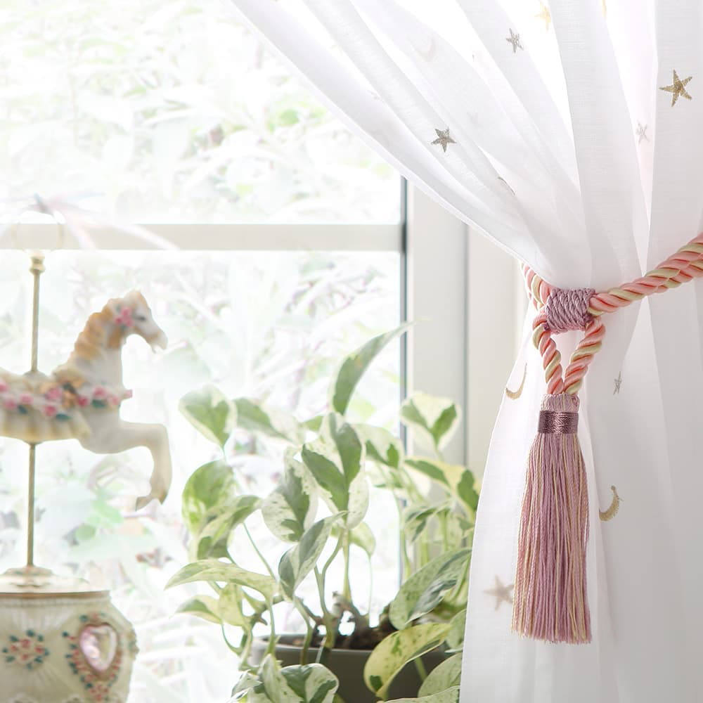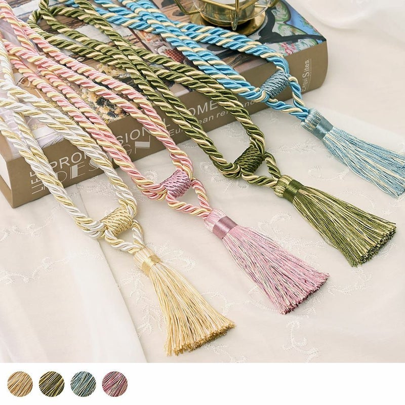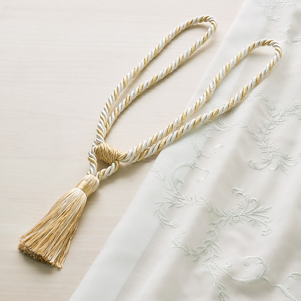 小ぶりで可愛らしいタッセルがふわりと揺れ、コンパクトなサイズ感がカーテンにそっと華やぎを添えてくれます。