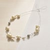 しなやかで華奢なワイヤーに、しっとりとした光沢を放つパールが連なり、上品さの中もしっかりとした華やかさを宿します。