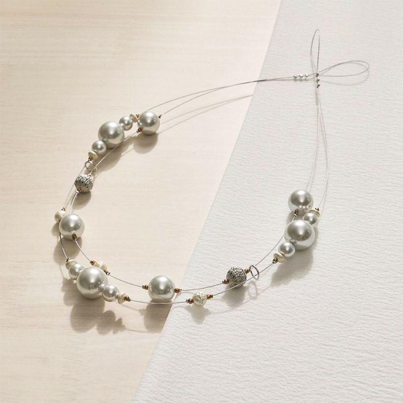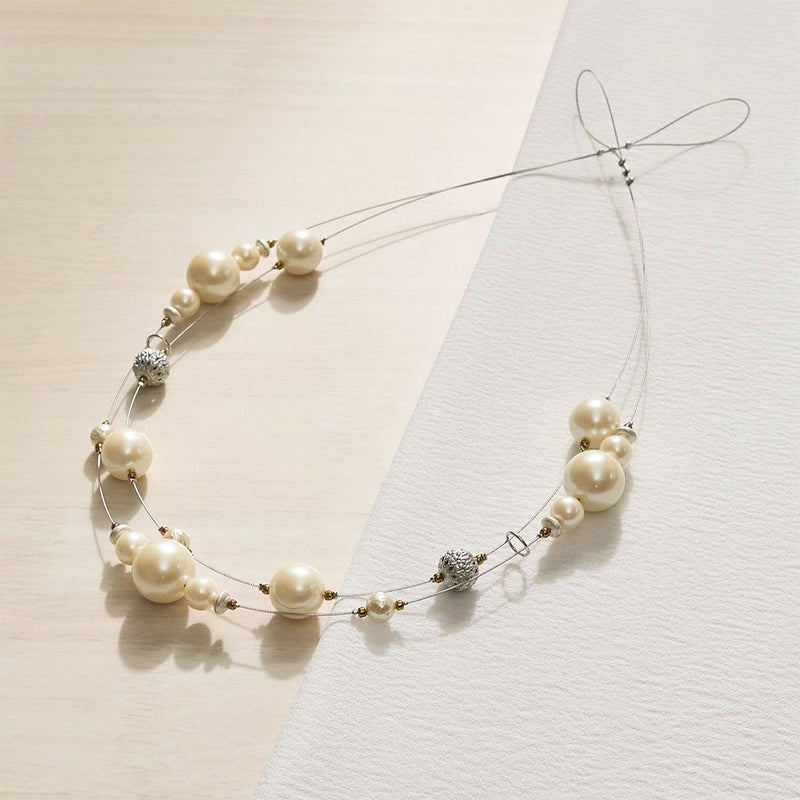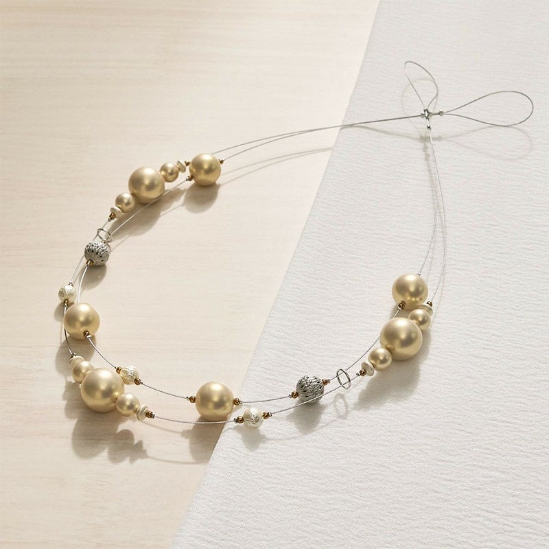 まるで二連のネックレスのように、パールがワイヤーを彩るデザイン。