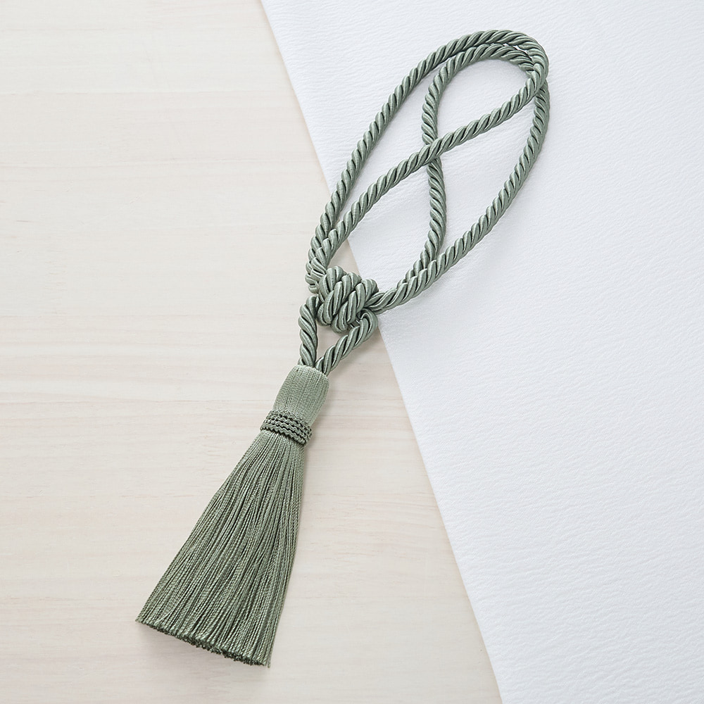 コードの中心にあしらわれたフリンジは、小ぶりながらも密に束ねられ、控えめな佇まいの中に、確かな存在感を与えます。