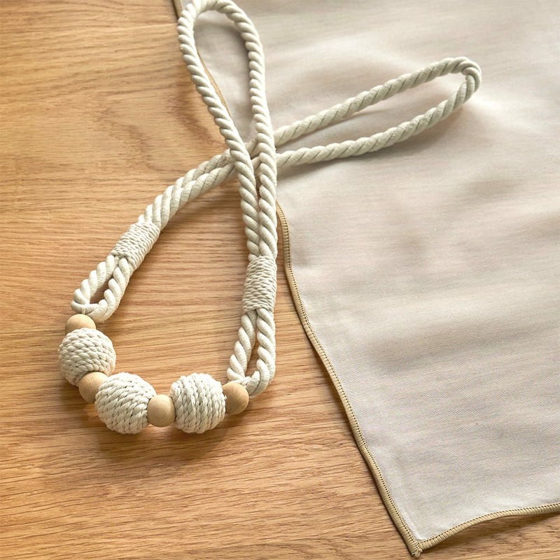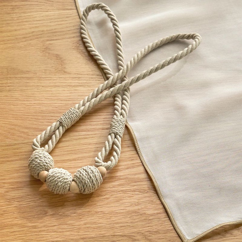 太めのコードはほどよいハリで、マットな質感が手になじみ、カーテンを優しく束ねてくれます。