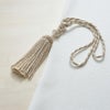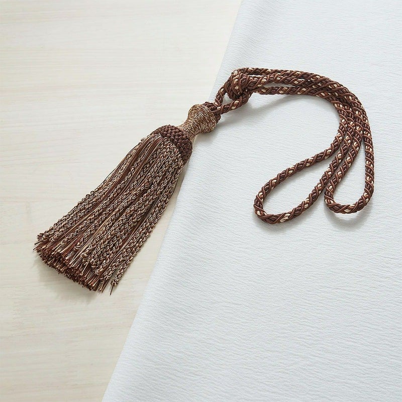 上部はコルセットのくびれのように"すらり"と引き締まり、房は細い糸束の周りにひねりを加えた太めの糸が配されています。