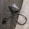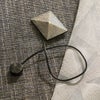 ピラミッドを思わせる幾何学的なモチーフに、本革コードのシャープなライン。
