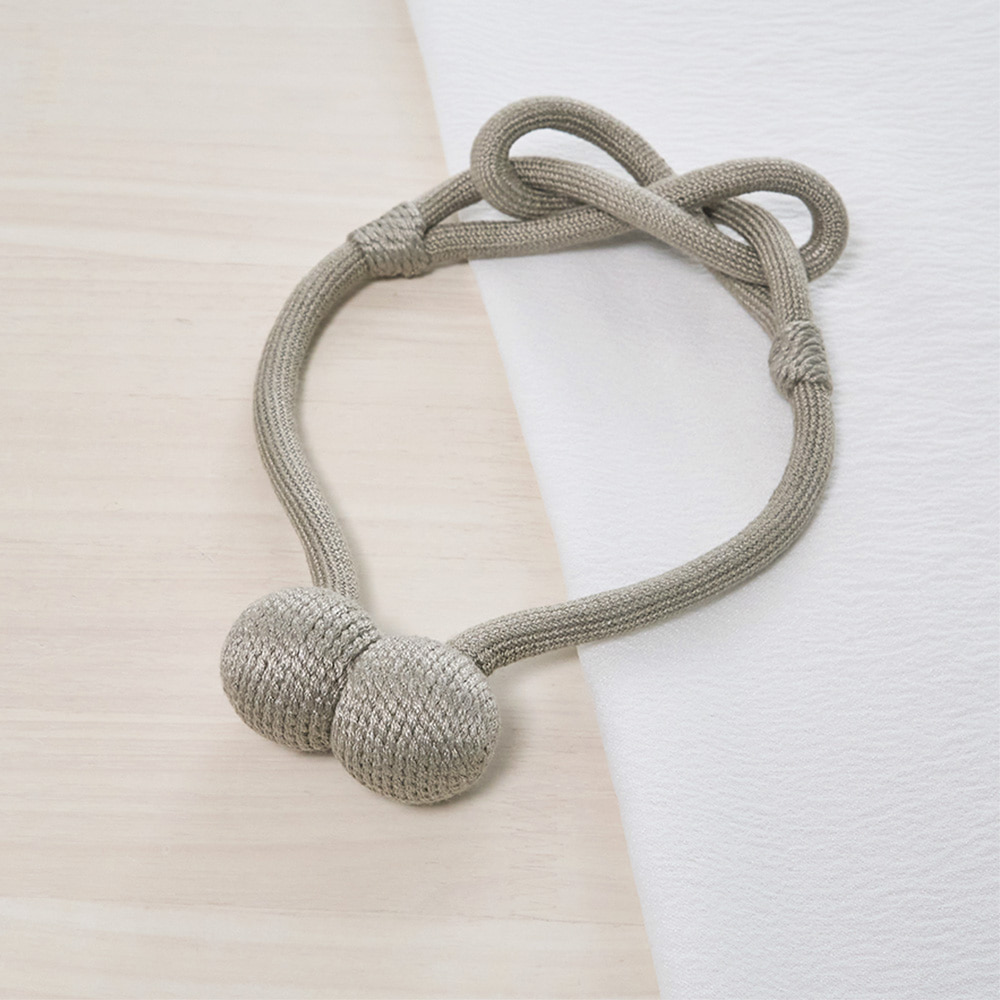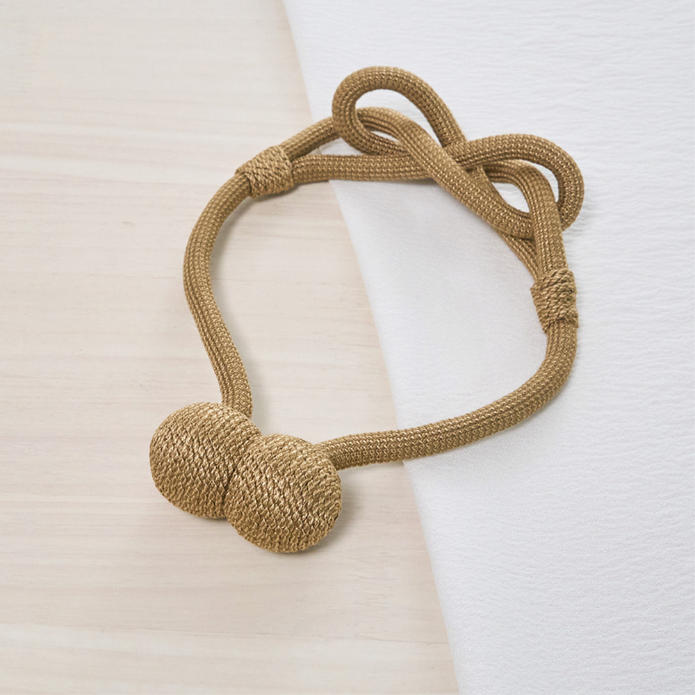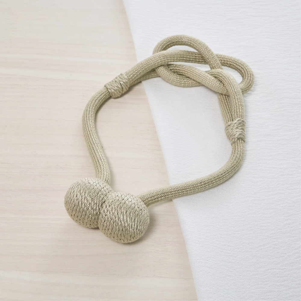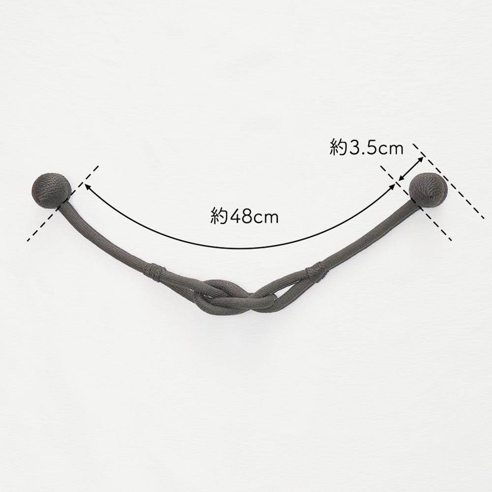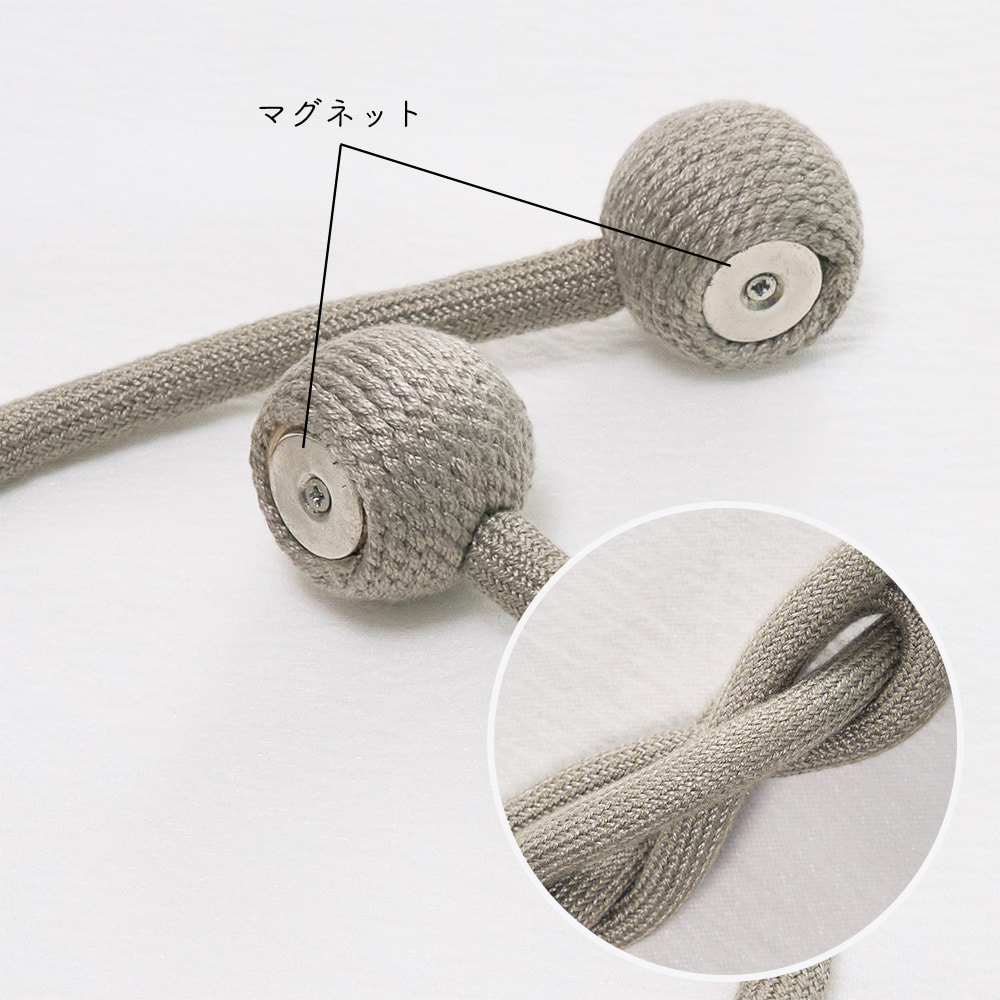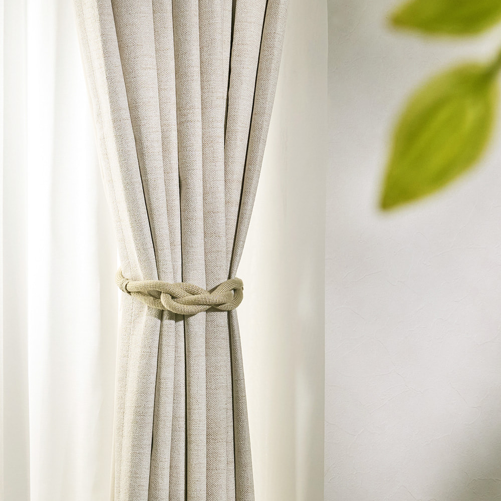 ロープの中央にそっとあしらわれた柔らかな結び目と、主張を抑えながらも確かに視線をとらえるデザインは、シンプルなカーテンにも、静かなアクセントを添えてくれます。