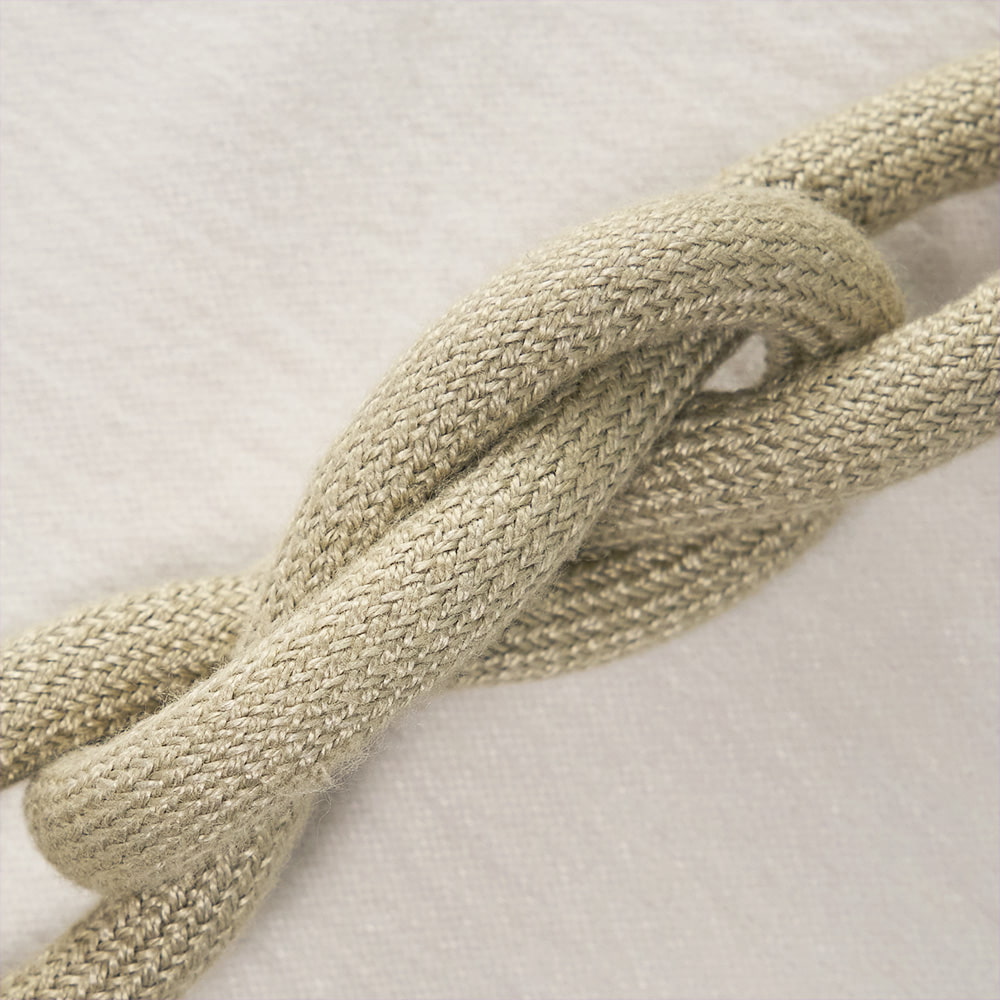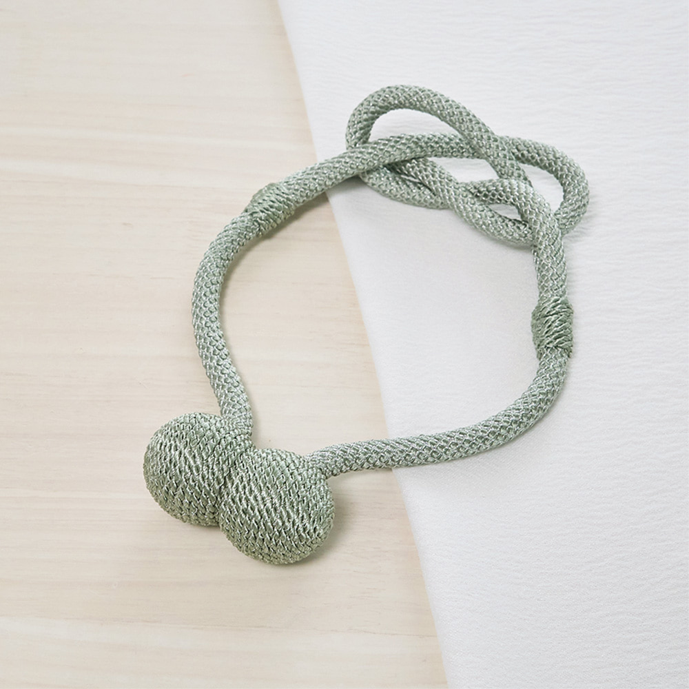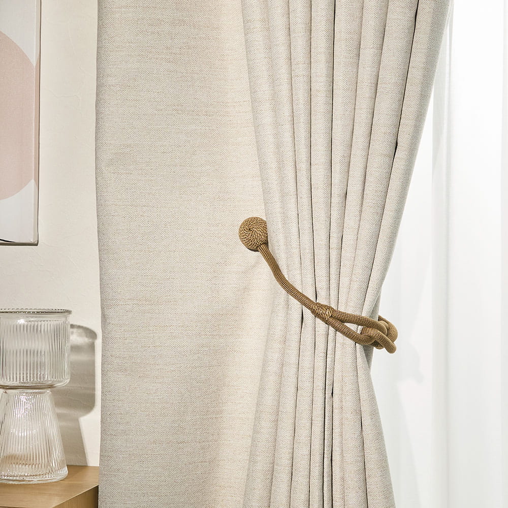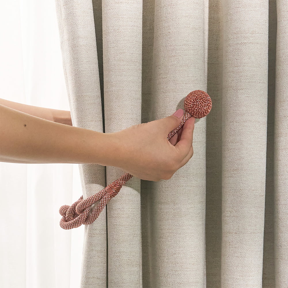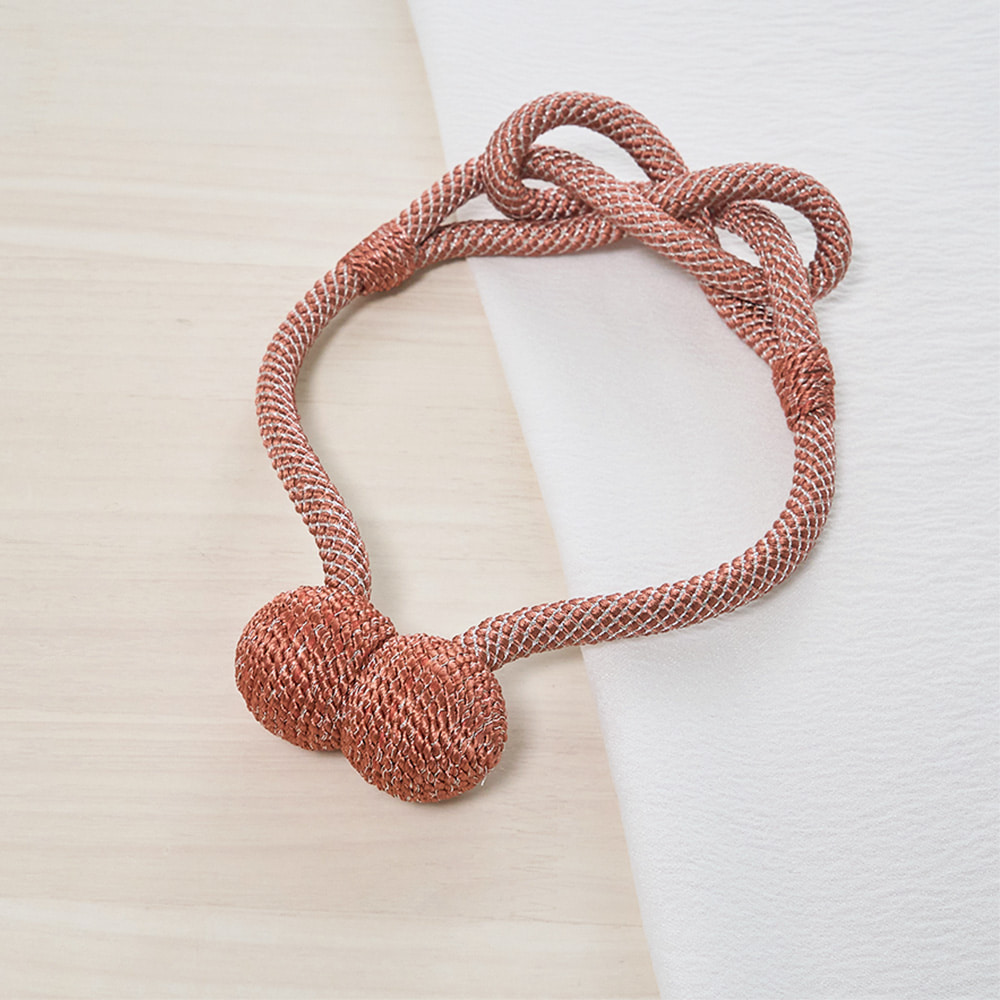 ロープの中央にそっとあしらわれた柔らかな結び目と、主張を抑えながらも確かに視線をとらえるデザインは、シンプルなカーテンにも、静かなアクセントを添えてくれます。