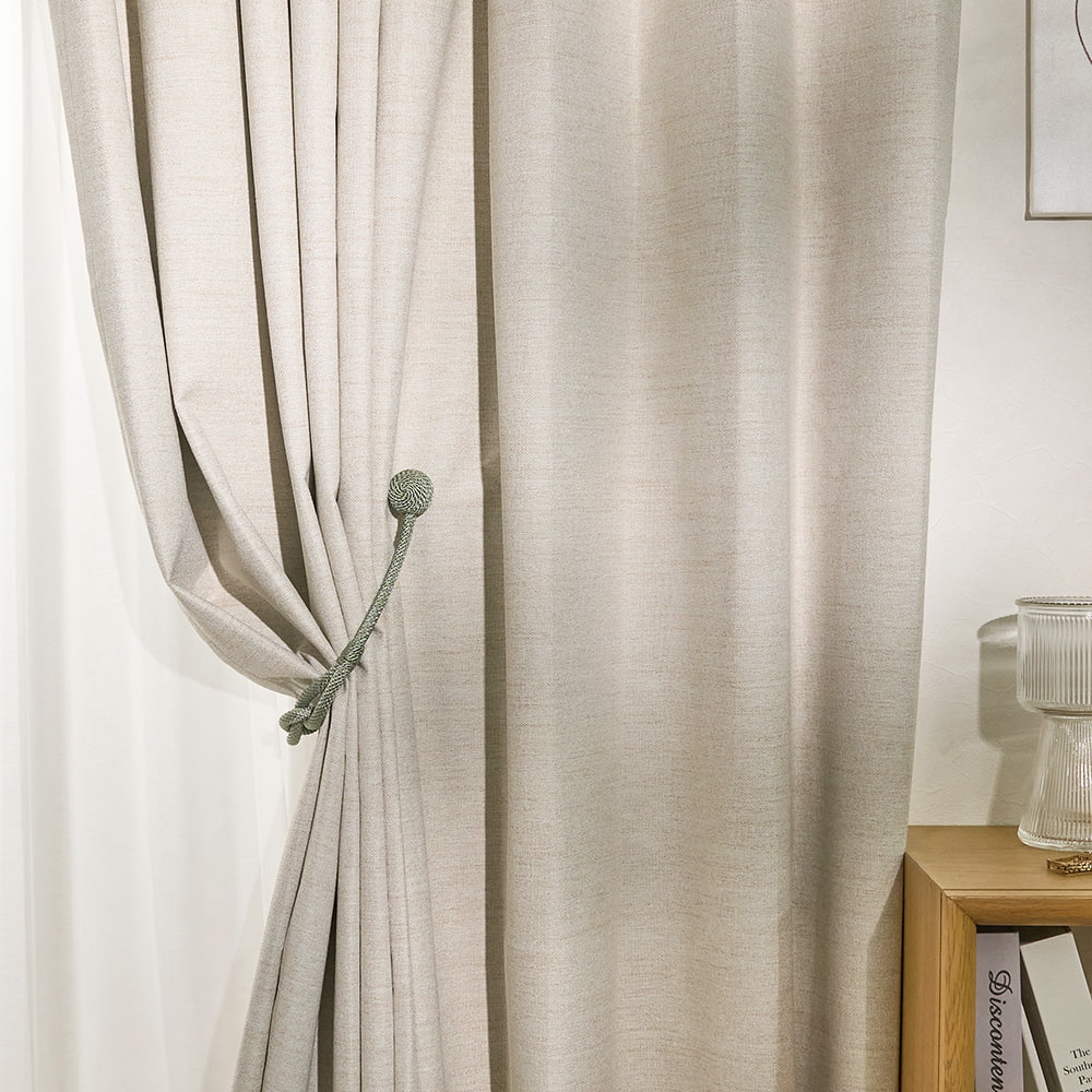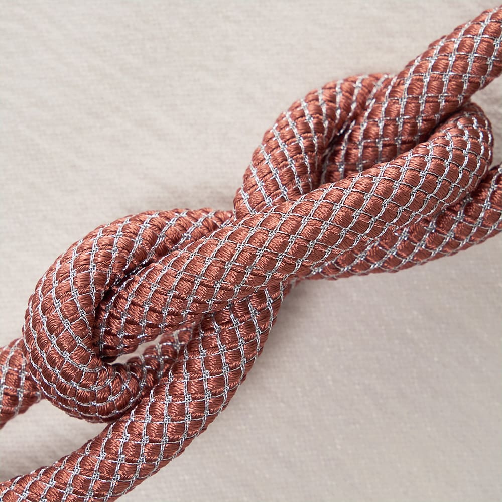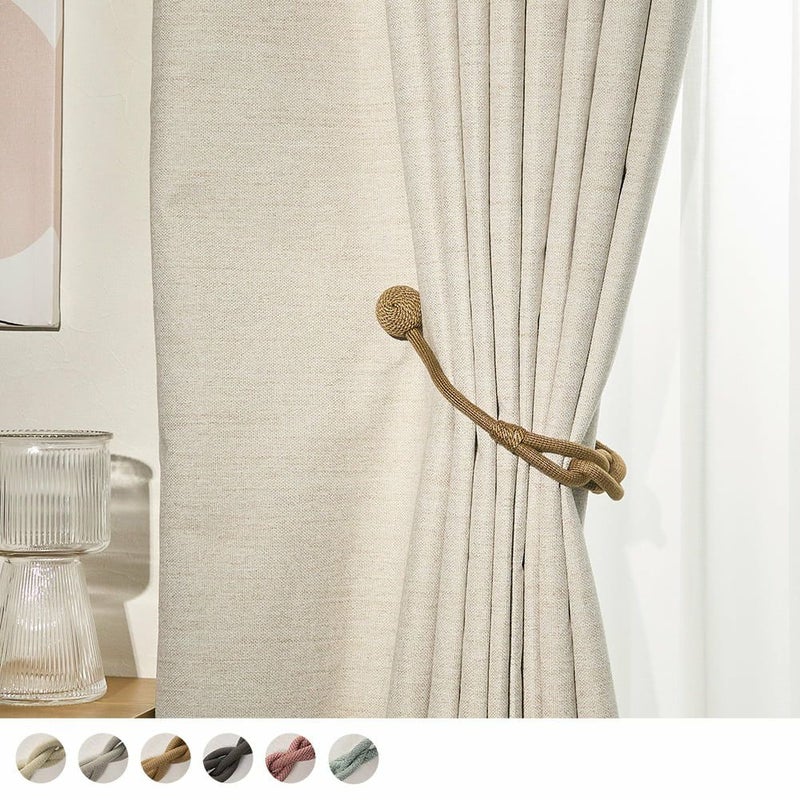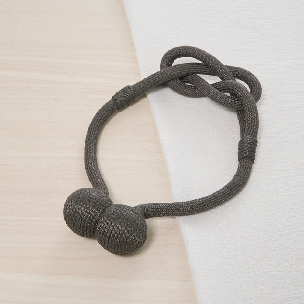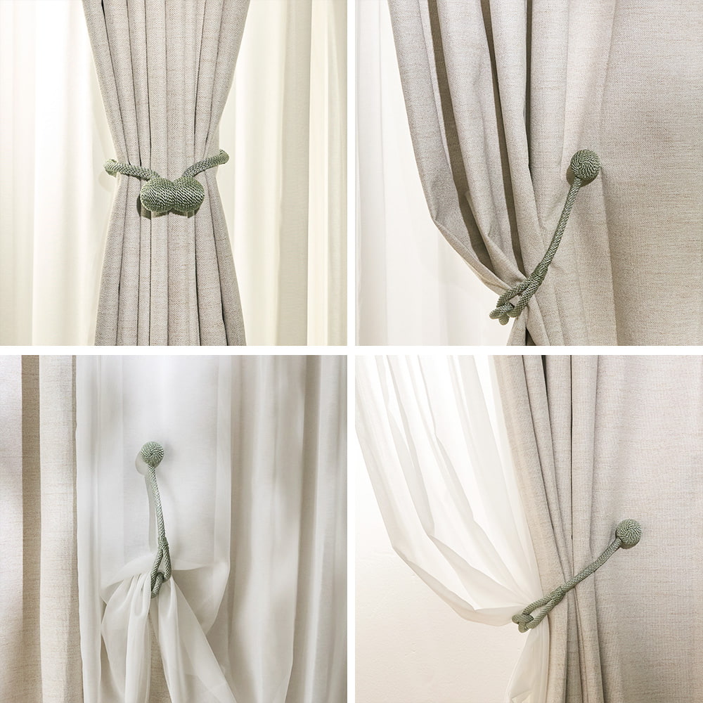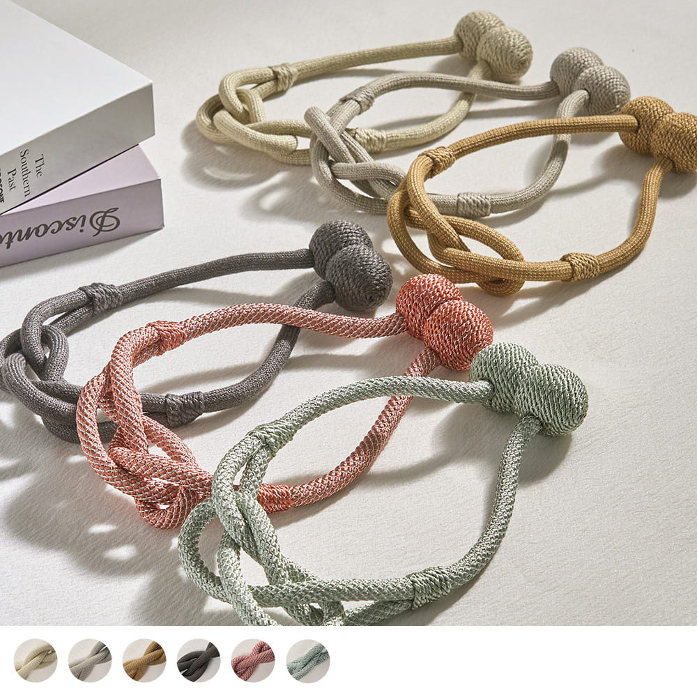 ロープの中央にそっとあしらわれた柔らかな結び目と、主張を抑えながらも確かに視線をとらえるデザインは、シンプルなカーテンにも、静かなアクセントを添えてくれます。