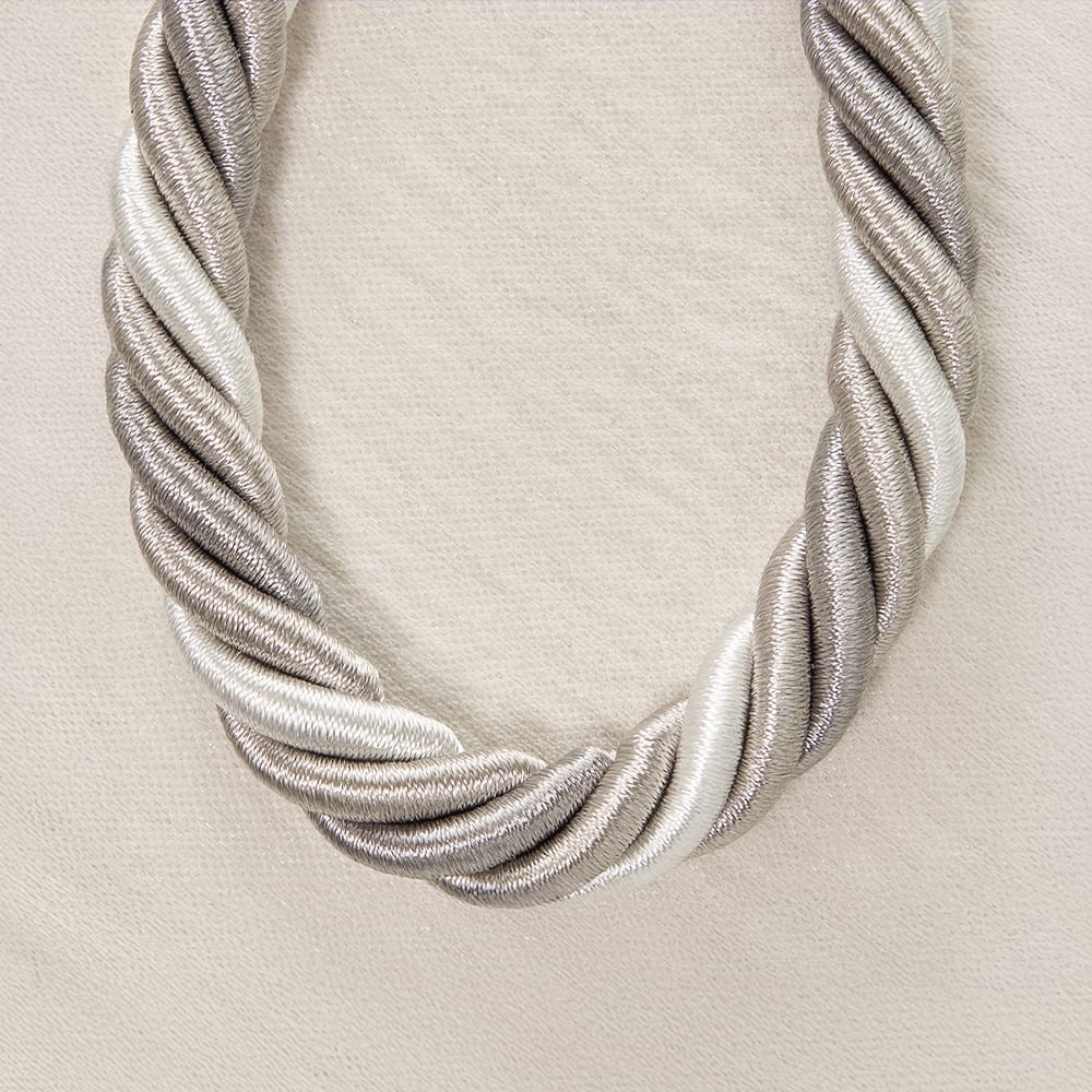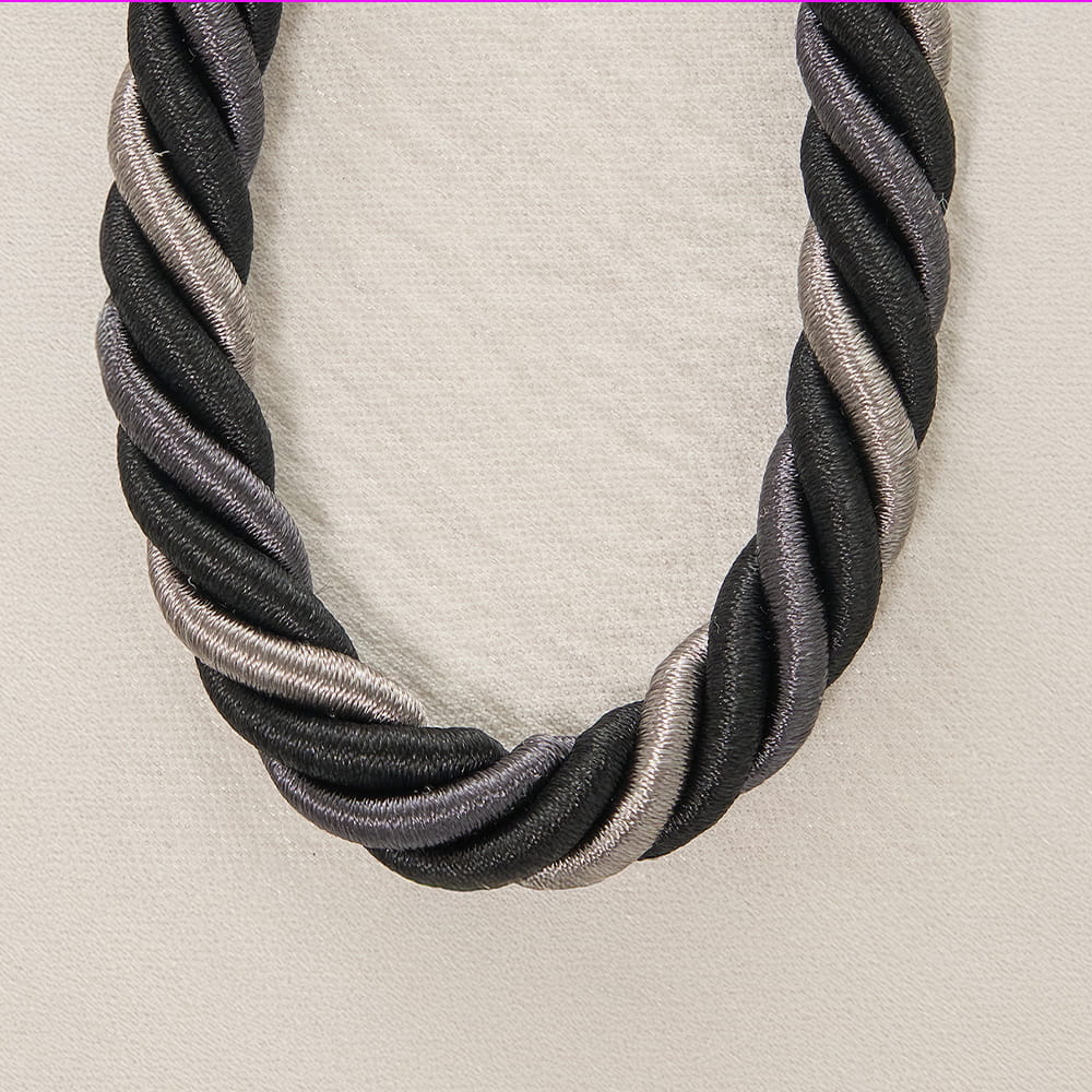 3色の糸を使って螺旋状に織り、シンプルすぎないデザインに仕上げました。 単色では出せない深みとニュアンスが、光の角度や見る位置によって、さりげなく表情を変えます。