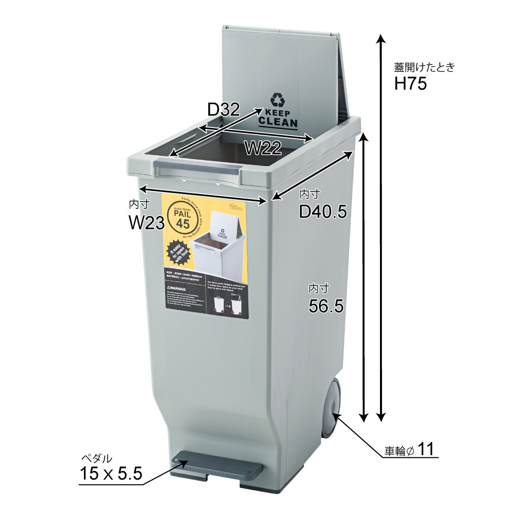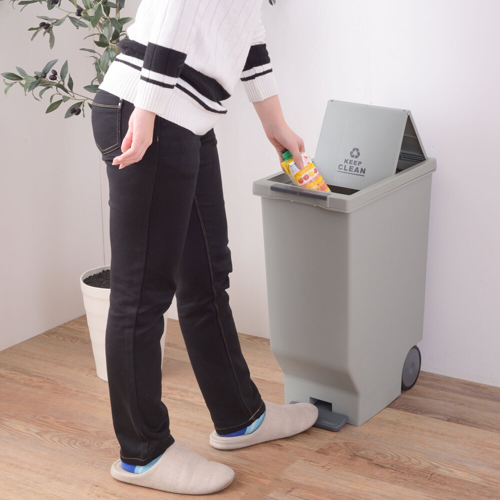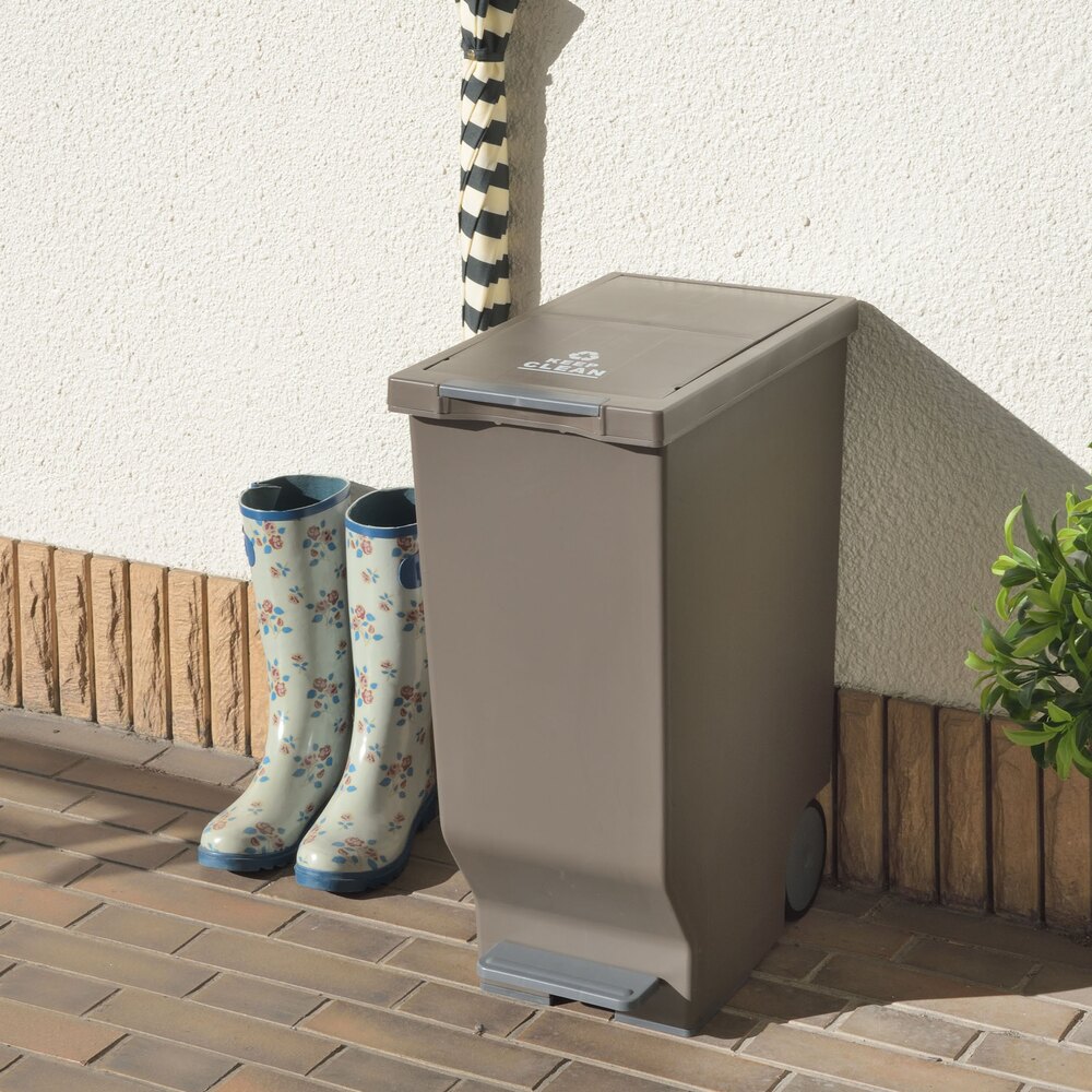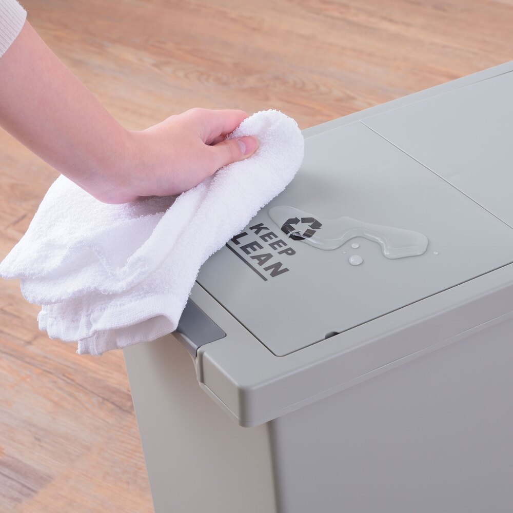 フットペダル操作で手を汚さず開閉できるため、清潔さと使いやすさを両立。スライドロックで蓋を開けたまま固定でき、調理や作業中もストレスフリーです。コンパクトな設計と大型キャスターで、移動も軽やかに。