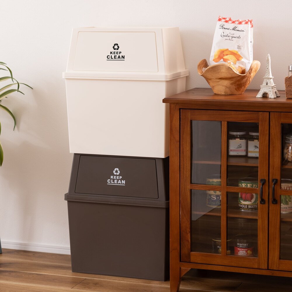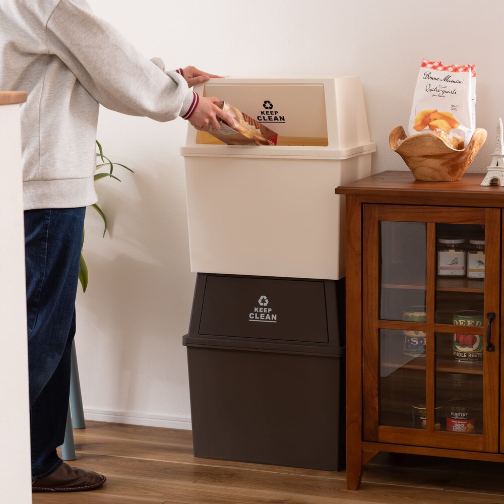 上下に積み重ねられるので、限られたスペースでも分別が簡単にでき、キッチンやリビング、デスク周りでも活躍します。