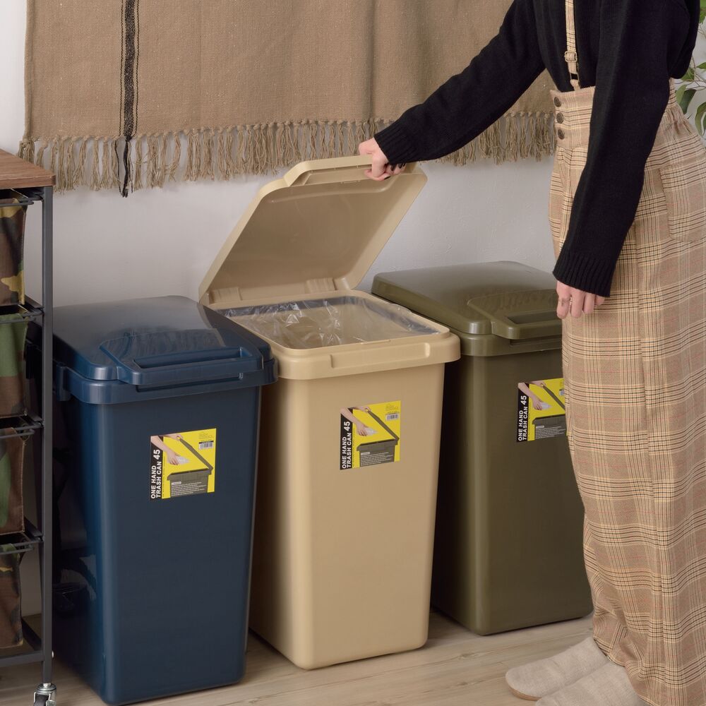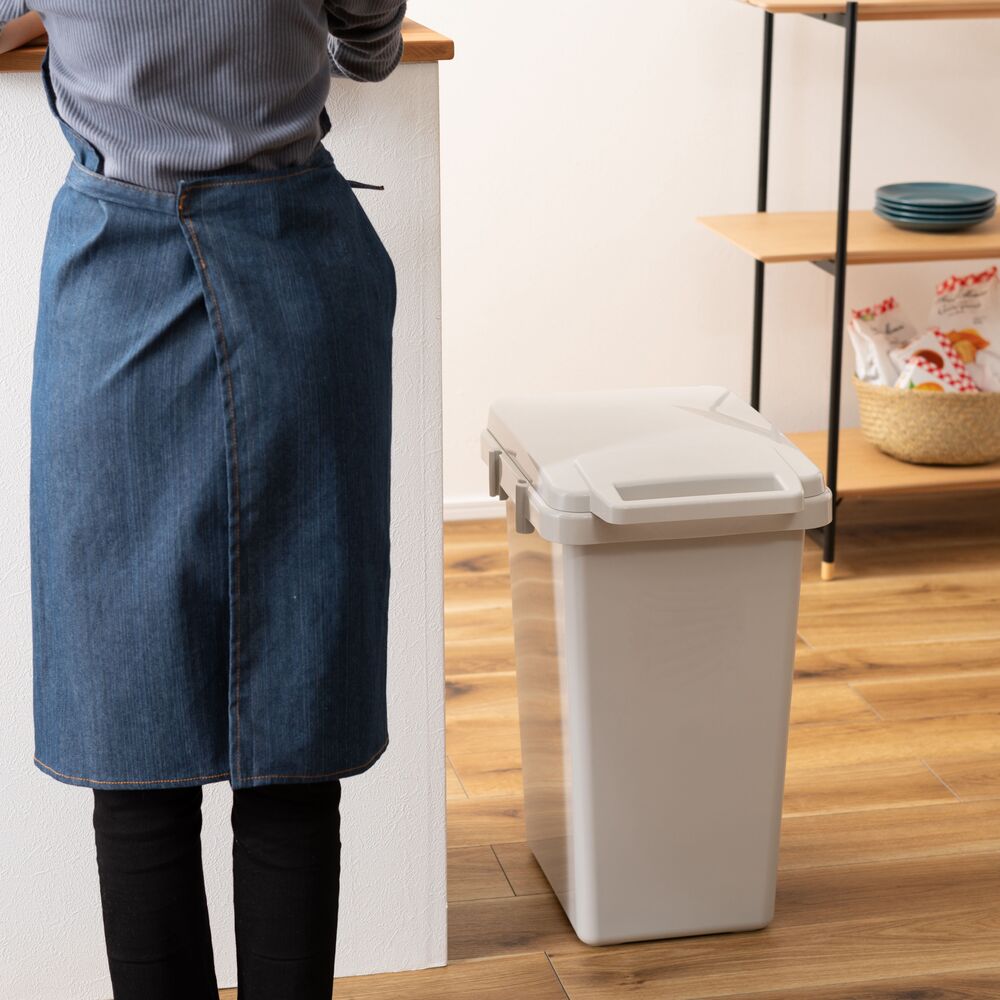 蓋には取っ手が付いているため、片手でラクに操作可能です。 横連結もでき、分別用に複数並べてもすっきりと統一感を演出します。