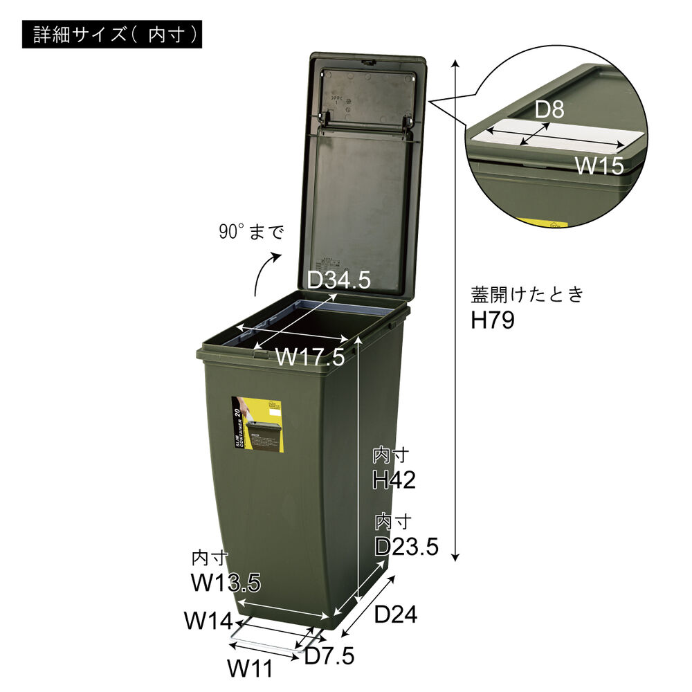 スリムな設計で、キッチンやデスク横などの隙間にもすっきり収まるコンテナです。