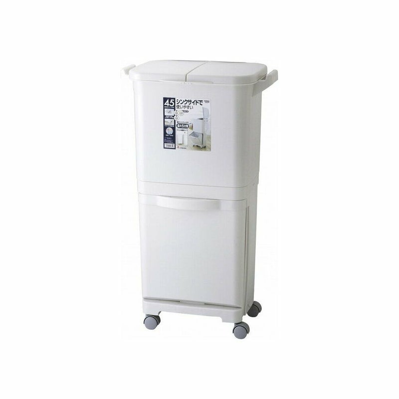 上下段の容器と両サイドのフックで、可燃ごみや資源ごみなどを賢く分類できます。